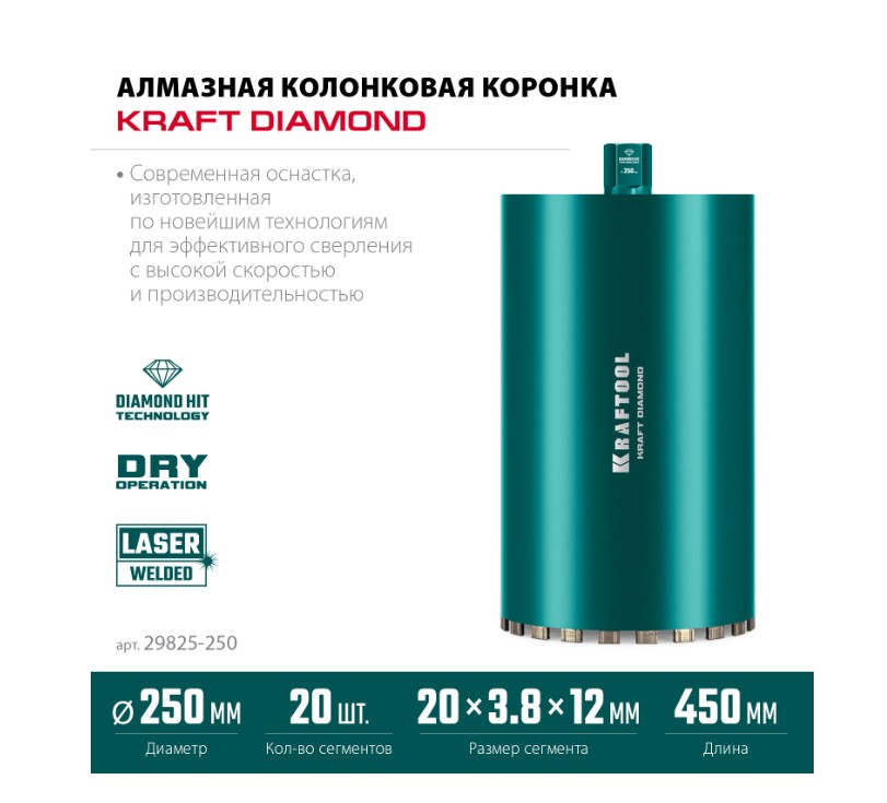 Сегментные алмазные колонковые коронки по железобетону KRAFT DIAMOND это синтез опыта и высоких технологий для превосходных результатов работы