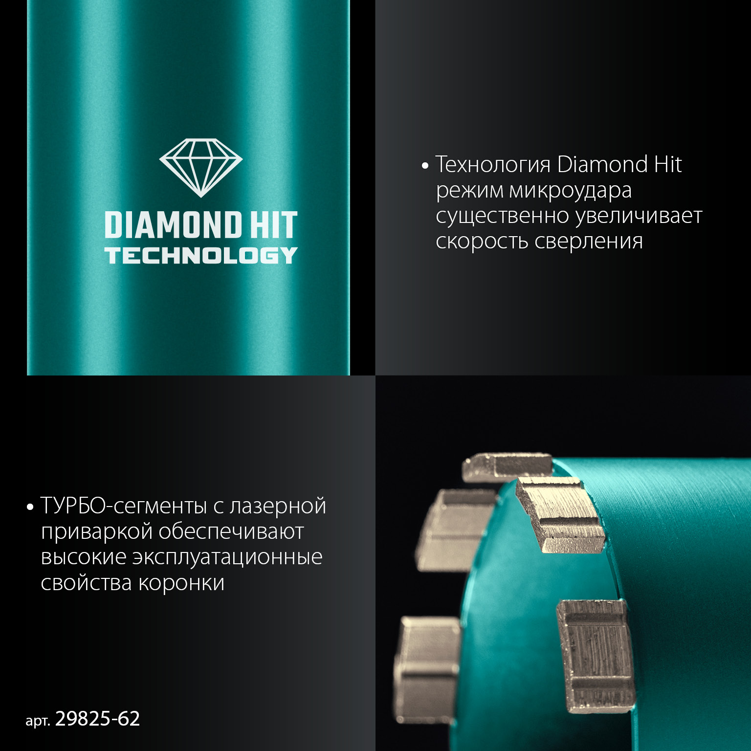 Для сухого сверления отверстий в железобетоне, кирпиче и других строительных материалах. Используются с установками алмазного бурения с функцией микроудара мощностью от 1,5 кВт.
