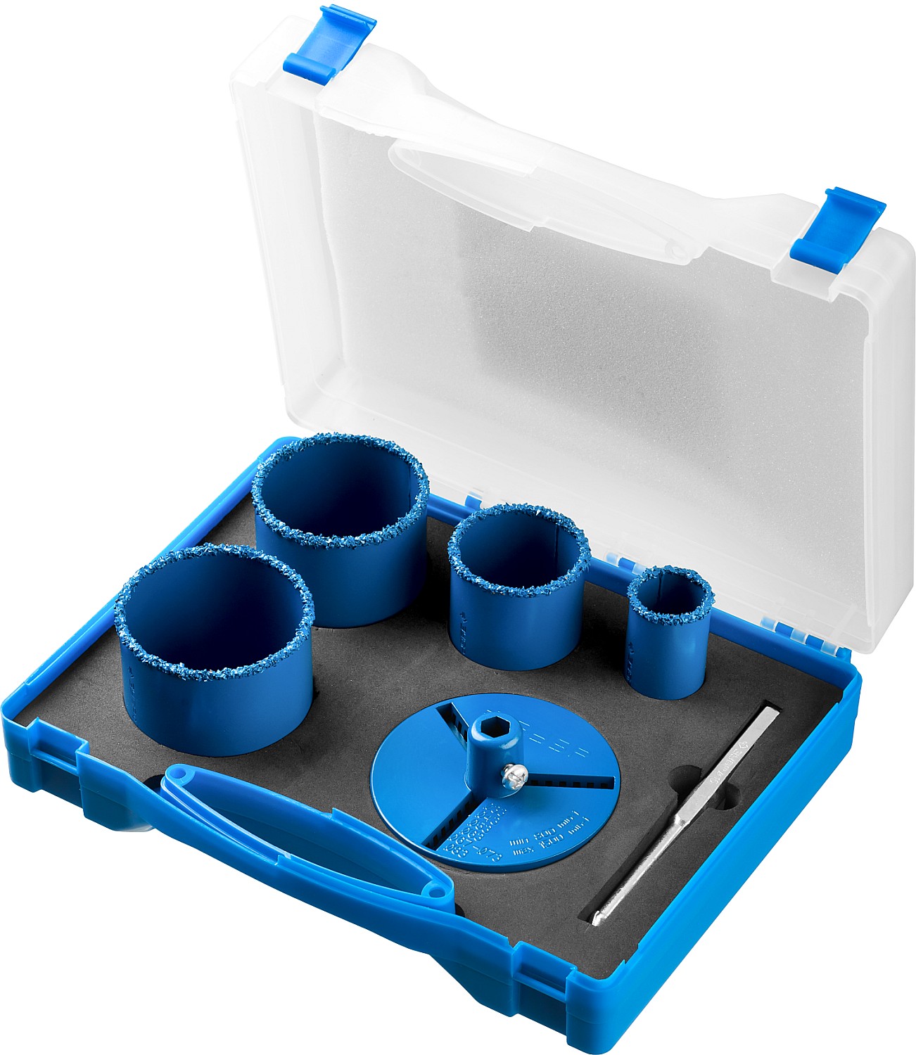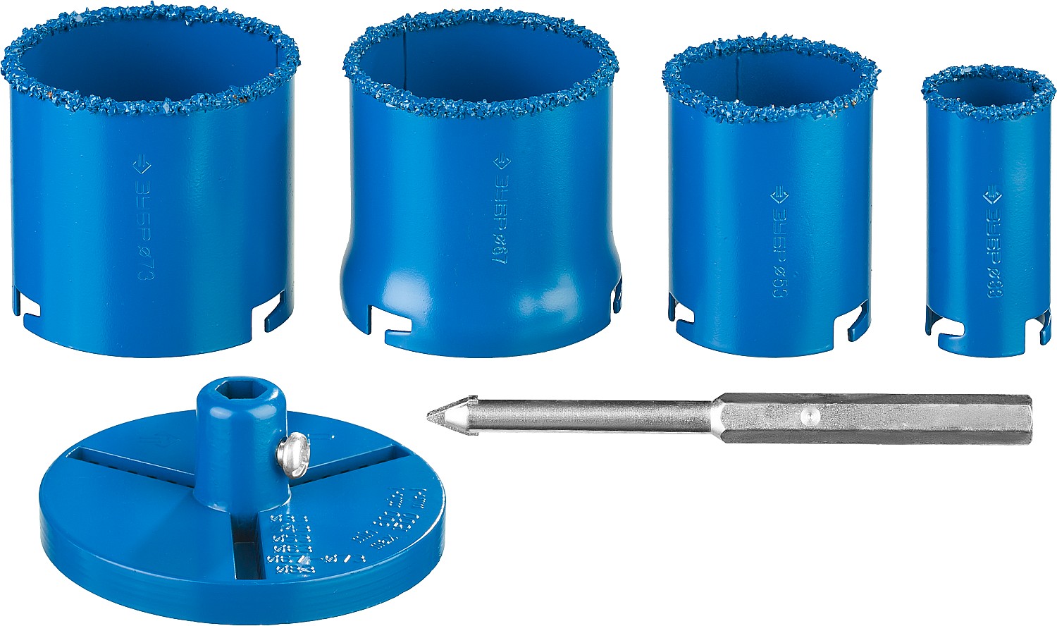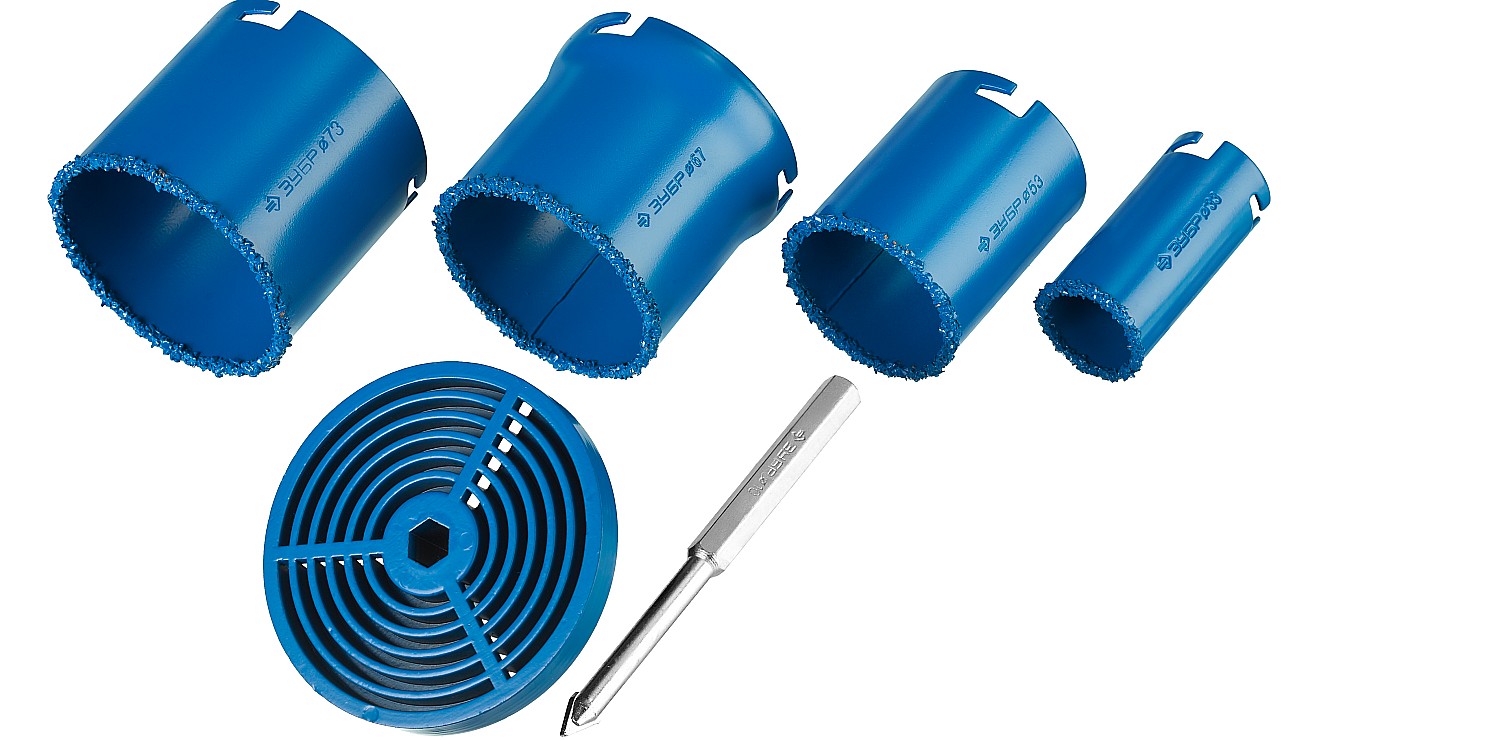 Набор применяется для получения ровных отверстий в облицовочных материалах, а также в ячеистом бетоне, кирпиче и гипсокартоне. Используется на дрелях и легких перфораторах в режиме безударного сверления.