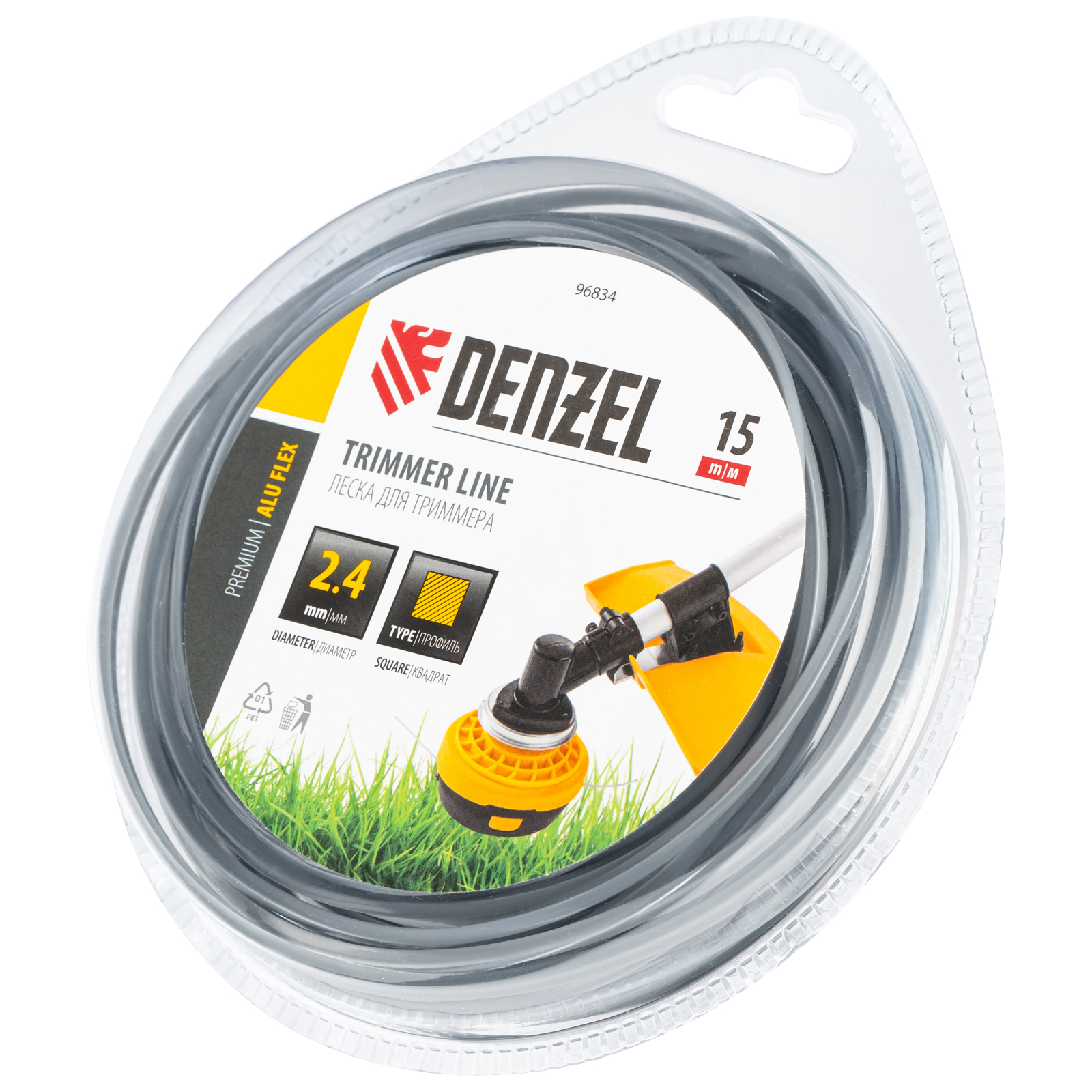 Армированная алюминием леска для триммера Denzel ALUFLEX 96834 квадратного сечения, толщиной 2,4 мм и длиной 15 мм, в блистере, предназначена для скашивания густой травы и растений с толстыми стеблями. Отличается повышенной износостойкостью. Заправляется в катушку электрического триммера или бензотриммера с объемом двигателя 25-52 см3. Леска будет полезна владельцам дачных участков.