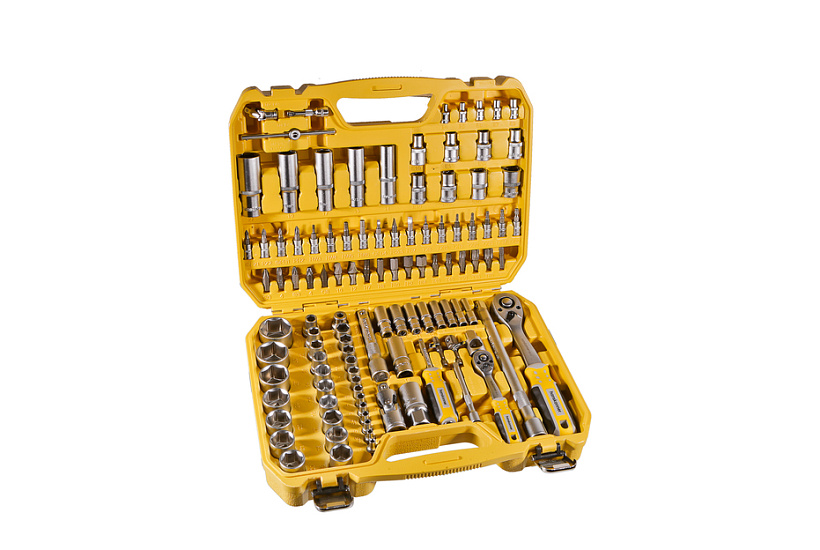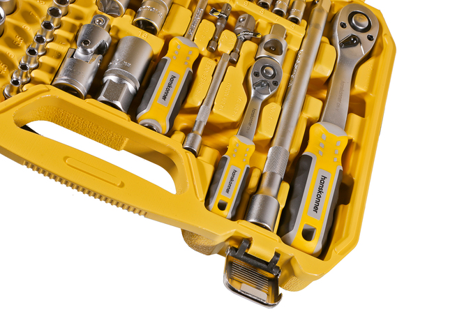 Набор инструментов hanskonner с присоединительными квадратами 1/2" и 1/4" укомплектован высококачественными 108 предметами, предназначенными для ремонта и обслуживания автомобилей и других транспортных средств. Является незаменимым помощником для работы в гараже, автомастерской или сервисном центре.