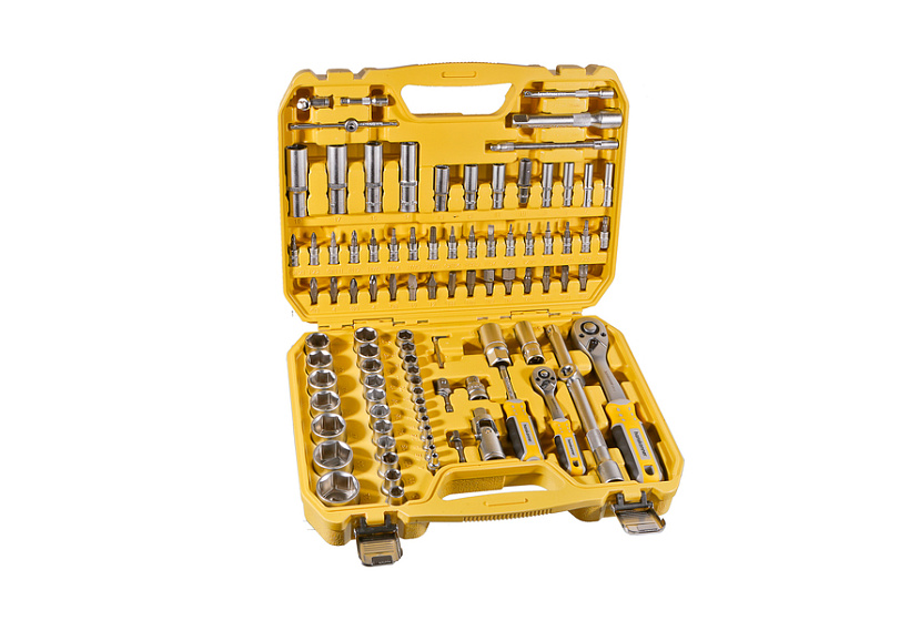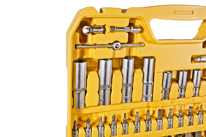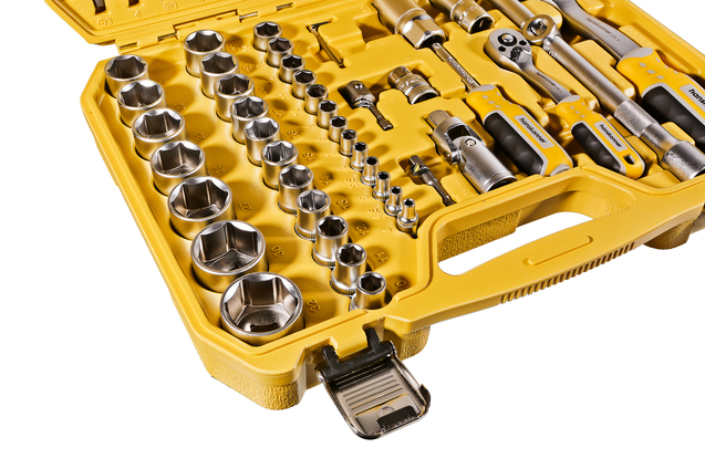 Набор инструментов hanskonner с присоединительными квадратами 1/2" и 1/4" укомплектован высококачественными 94 предметами, предназначенными для ремонта и обслуживания автомобилей и других транспортных средств. Является незаменимым помощником для работы в гараже, автомастерской или сервисном центре.