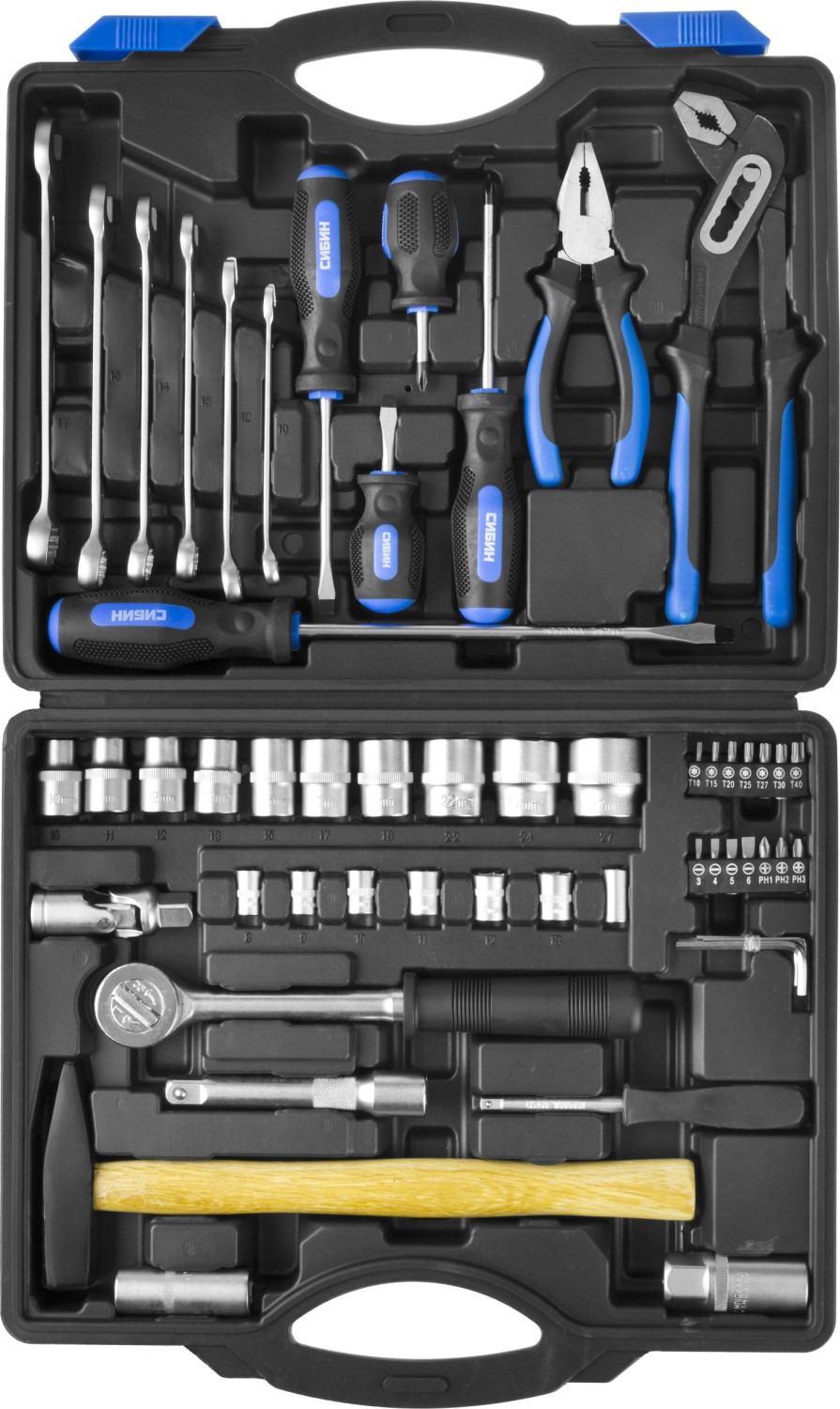 Набор автомобильного инструмента СИБИН 27765-H56, предназначен для выполнения ремонтных работ. Изделия изготовлены из качественной инструментальной стали. Рабочие поверхности закалены. Хромированное покрытие. Эргономичные рукоятки. Надежный пластиковый кейс для хранения и переноски инструмента.
