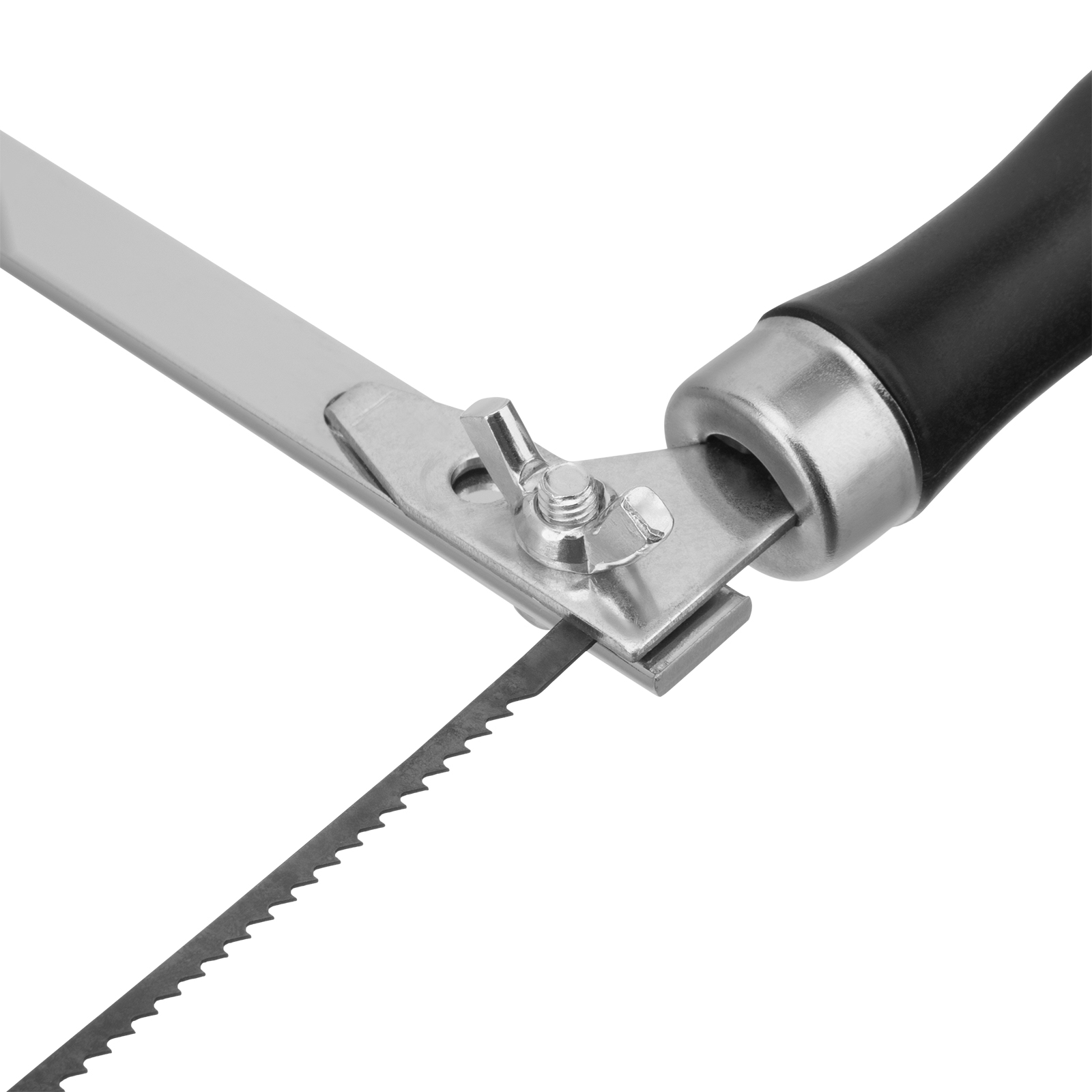 Лобзик Sparta 240205 длиной 200 мм предназначен для выполнения прямо- и криволинейных распилов в фанерных или пластиковых заготовках. Прочная и упругая стальная рама надежно удерживает полотно длиной 130 мм, обеспечивая высокое качество работ. Лобзик используется для ремонта и отделки, а также для художественной резьбы по дереву.