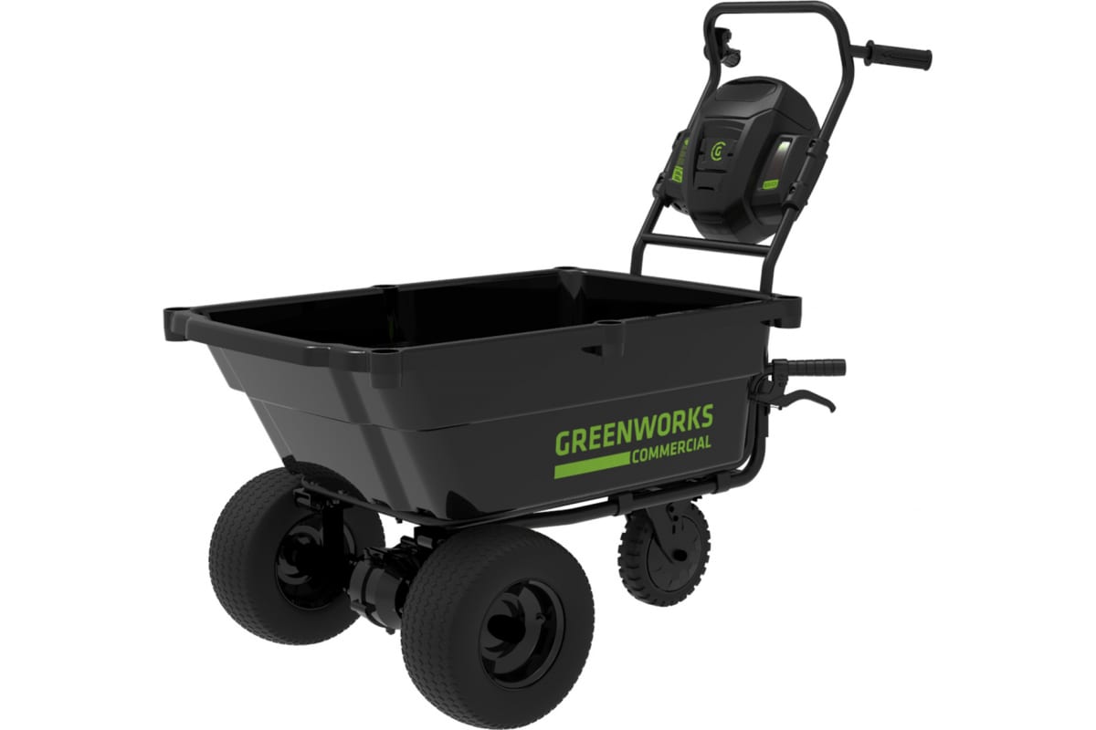 Садовая самоходная тележка Greenworks 82GC 82V 7400607 (106 л) аккумуляторная — мощная самоходная тележка из профессиональной линейки отлично подойдет для перевозки различных материалов, удобрений и садовой техники!