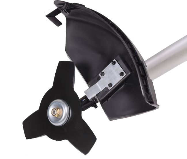 Защитный кожух предохраняет оператора от летящих осколков и частиц травы, обеспечивая высокий уровень безопасности при работе.