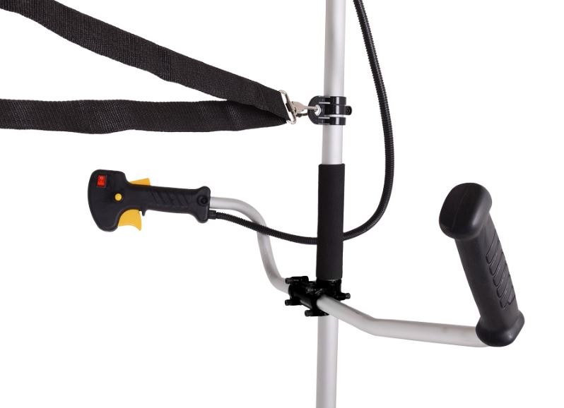 Штанга у модели выполнена в неразборном варианте, что придаёт ей дополнительную прочность и устойчивость. Управление триммером осуществляется с помощью удобных рукояток, а электронный тип зажигания обеспечивает быстрый и простой запуск двигателя. Стандартная антивибрационная система снижает усталость оператора при продолжительной работе.
