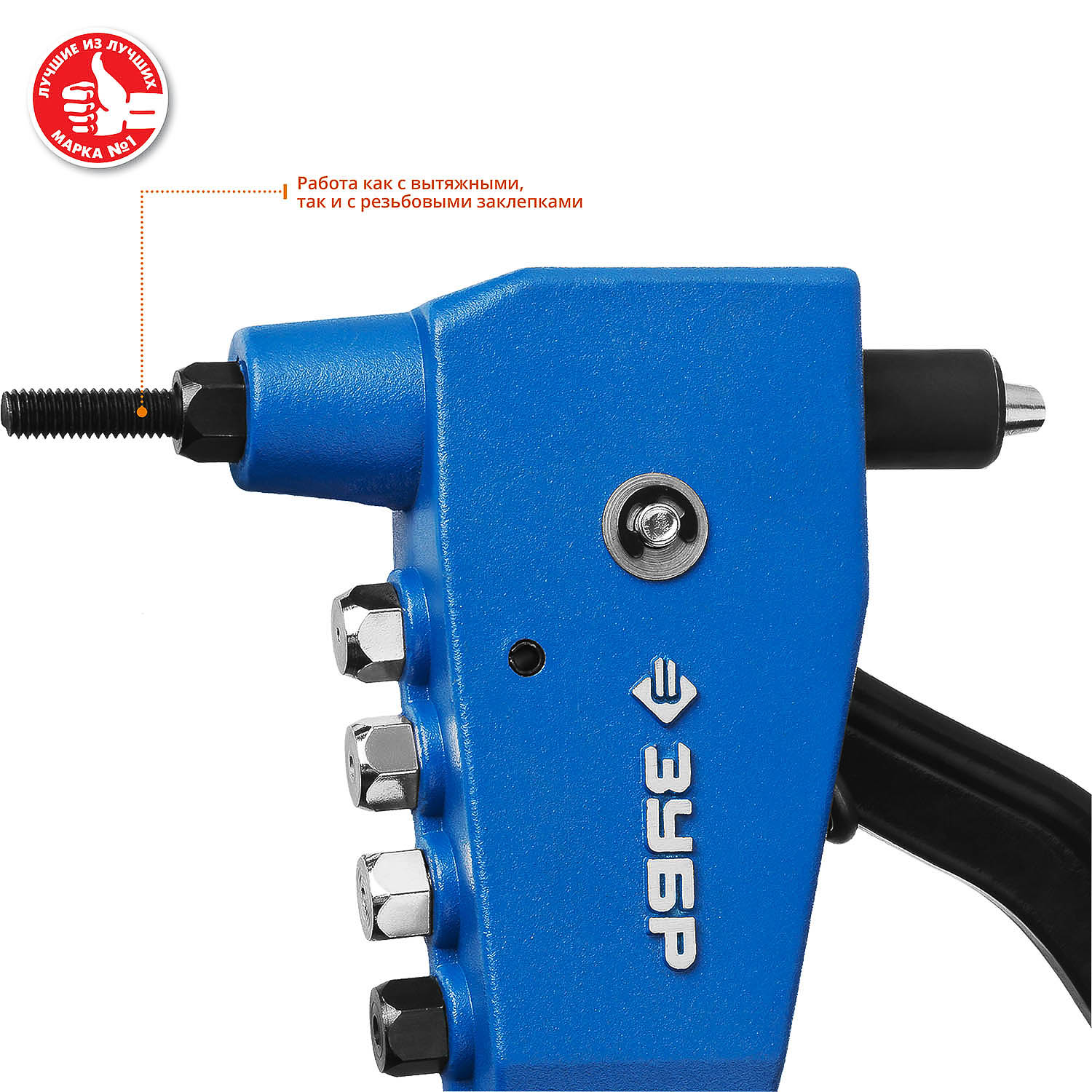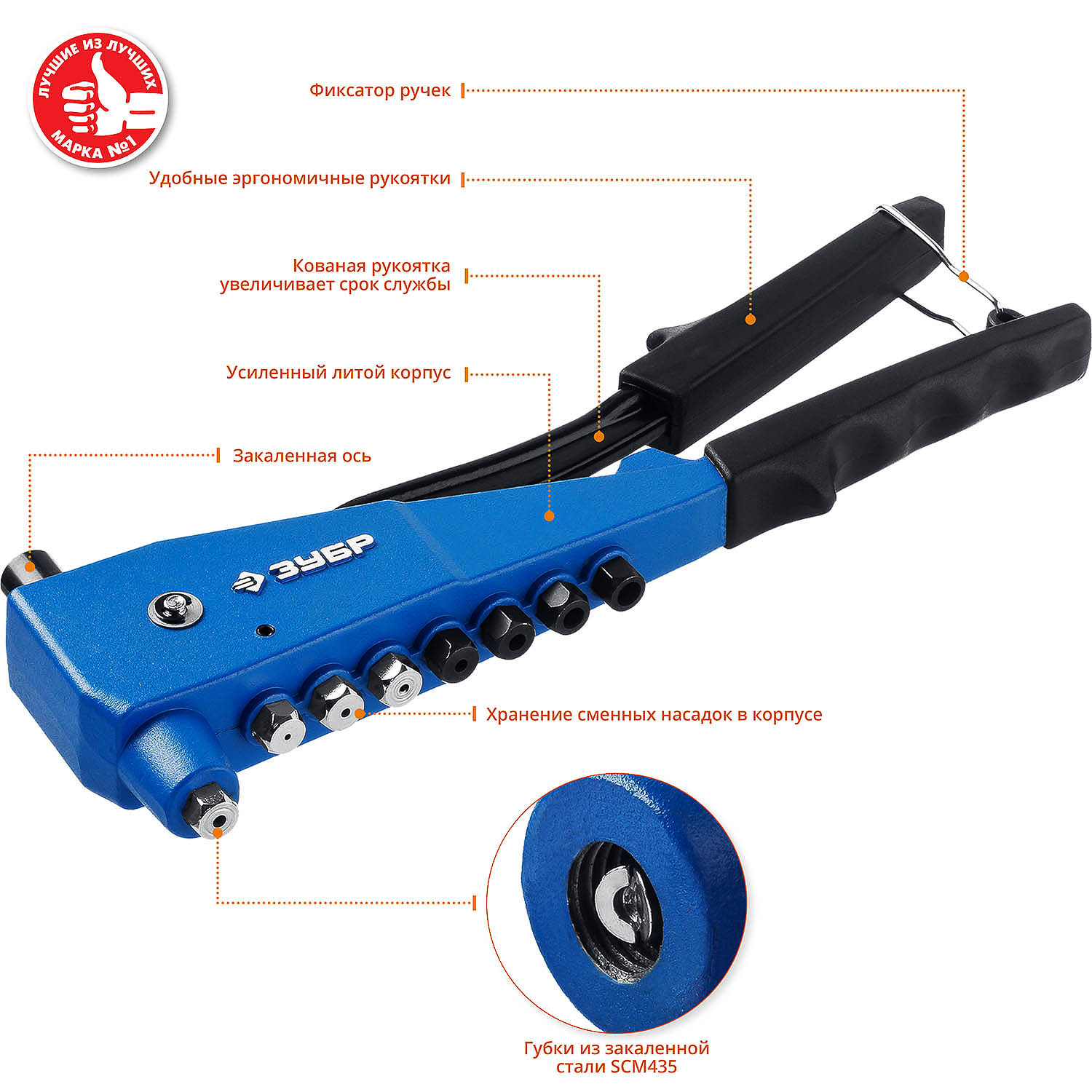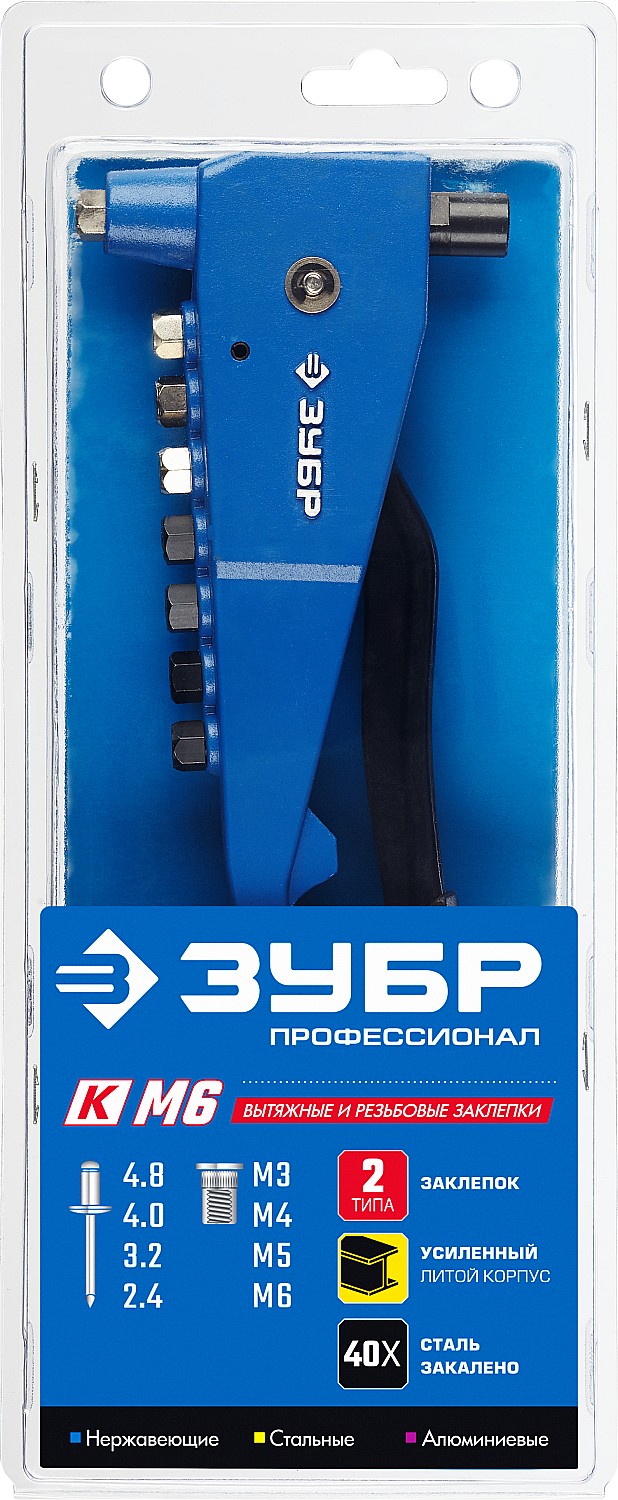 Комбинированный литой заклепочник ЗУБР К-М6, 2 вида заклёпок