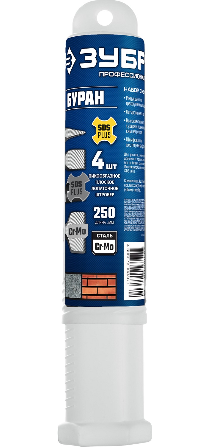 Комплектация 4 шт.: пиковое, плоское, лопаточное, штробер.