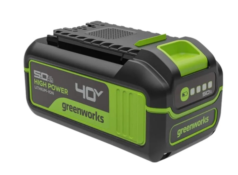 Универсальная батарея ёмкостью 5 Ач совместима со всеми устройствами платформы Greenworks 40V.