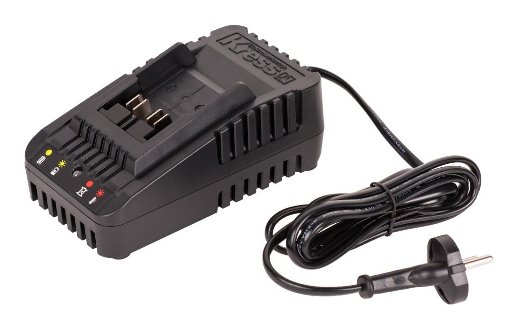 Зарядное устройство KRESS (модель KCH2006) - предназначено для зарядки аккумуляторных батарей KRESS с напряжением 20В. Время зарядки аккумуляторов: Время зарядки 2 Ач Батарея: около 60 минут Время зарядки 4 Ач Батарея: около 125 минут Для защиты аккумуляторов от перезаряда и перегрева встроен специальный защитный чип. На корпусе зарядного устройства расположен индикатор зарядки батареи. Также предусмотрены специальные места для крепления на стену. Питание зарядного устройства осуществляется от сети 100-240 В переменного тока 50-60 Гц, Выходной ток заряда: 2 Ампера. |