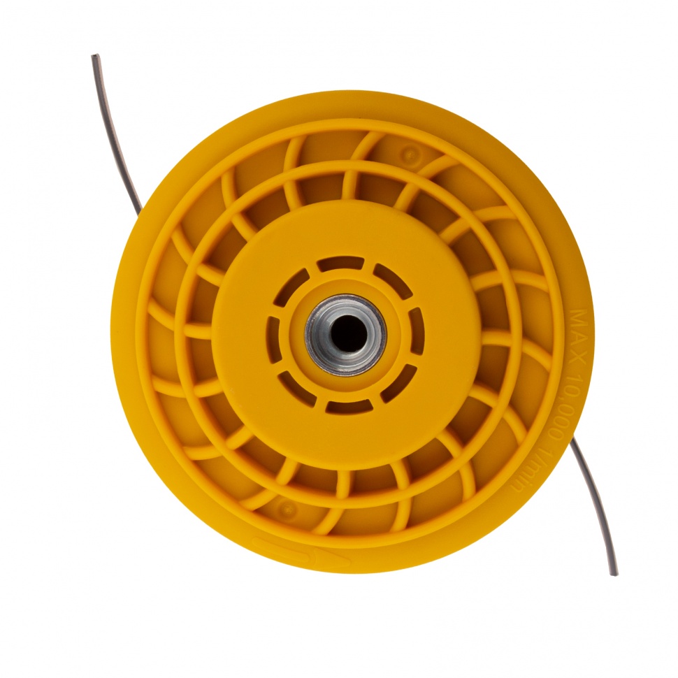 - Удобство заправки лески — режущий элемент наматывается без разбора катушки, что значительно экономит время и силы оператора.
