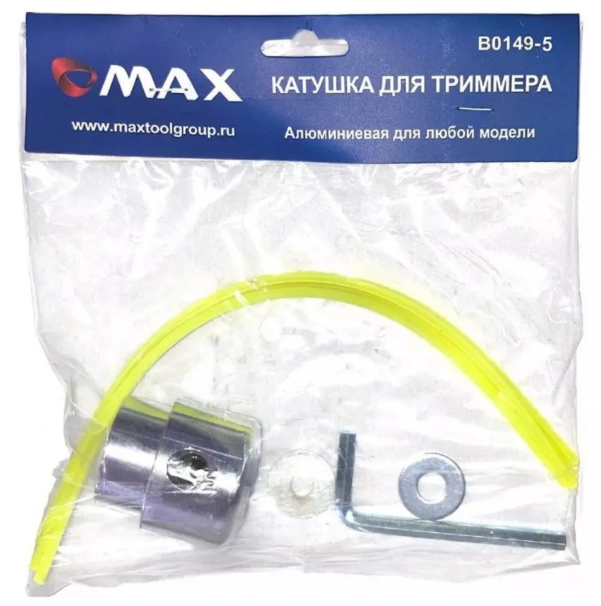 Катушка триммерная B0149-5 универсальная, алюминий, тип-паук №2 с резьбой (М10*1,25мм) - качественный и эргономичный инструмент от производителя MAXTOOL