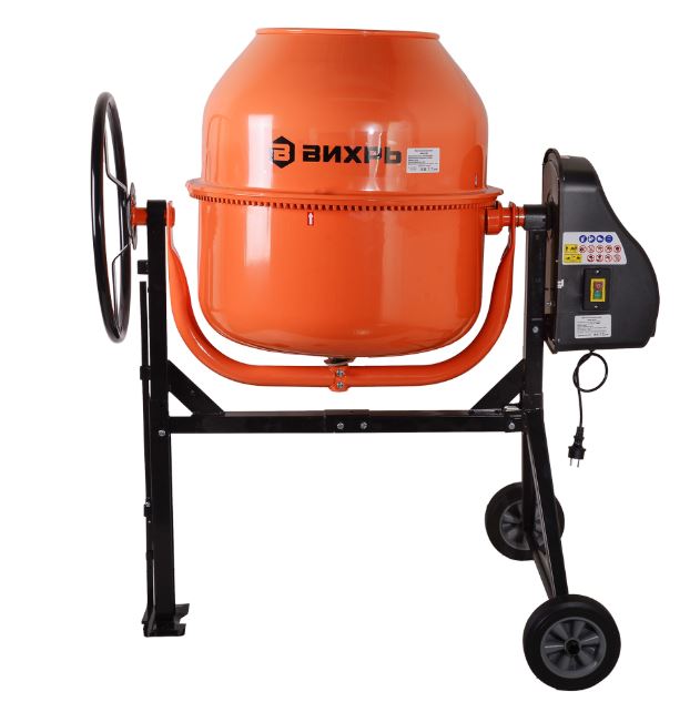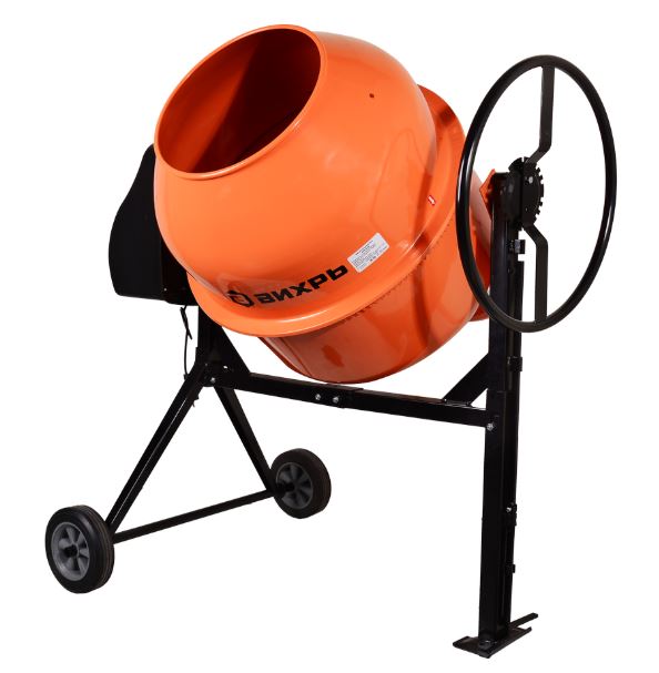 Удобный штурвал позволяет легко наклонять барабан для выгрузки готового раствора, минимизируя усилия пользователя. Бетономешалка оснащена двумя колесами, что делает ее удобной для перемещения по рабочей площадке. Яркая окраска соответствует требованиям безопасности, делая устройство заметным на строительной площадке. Кроме того, имеется защита от повторного включения при внезапном отключении электричества.