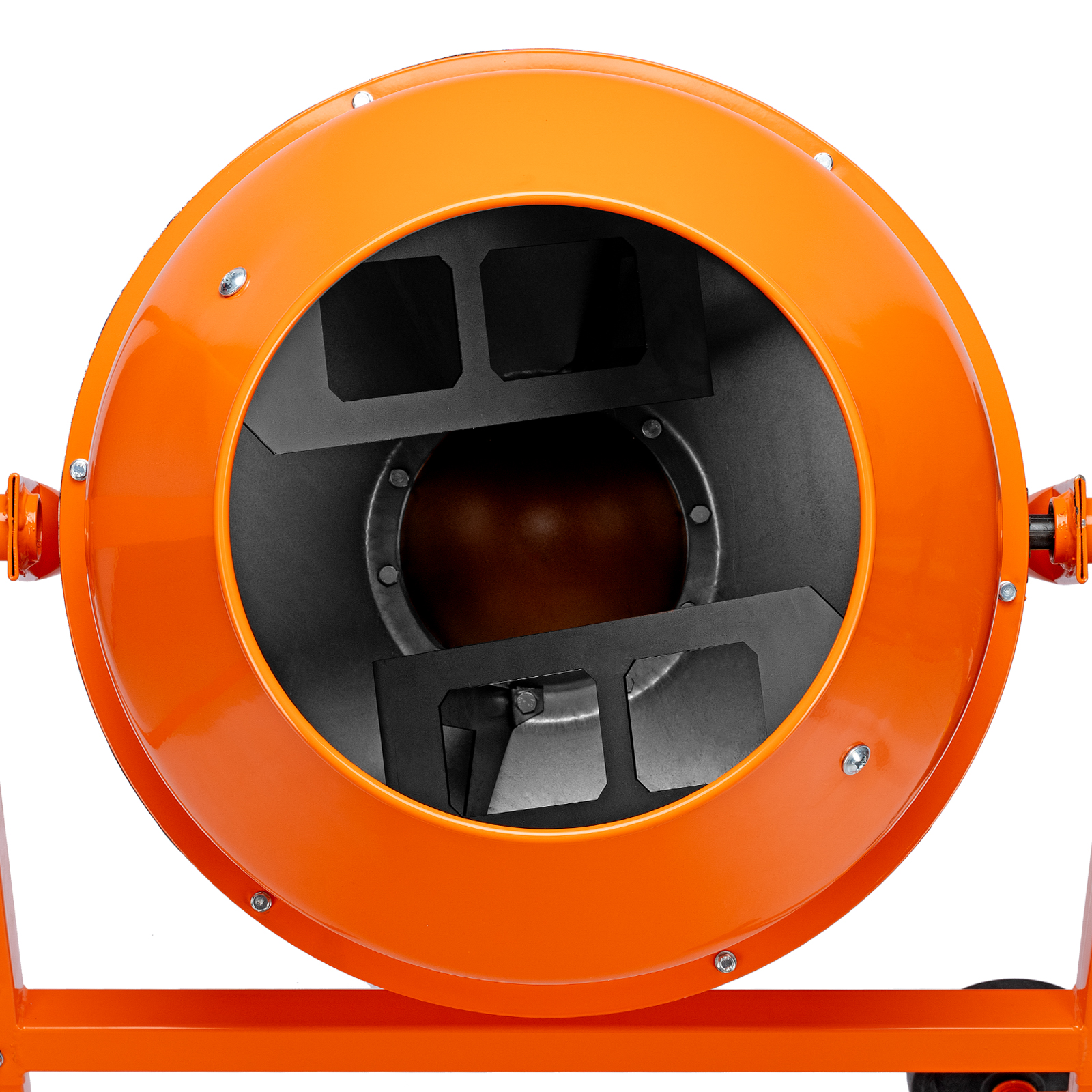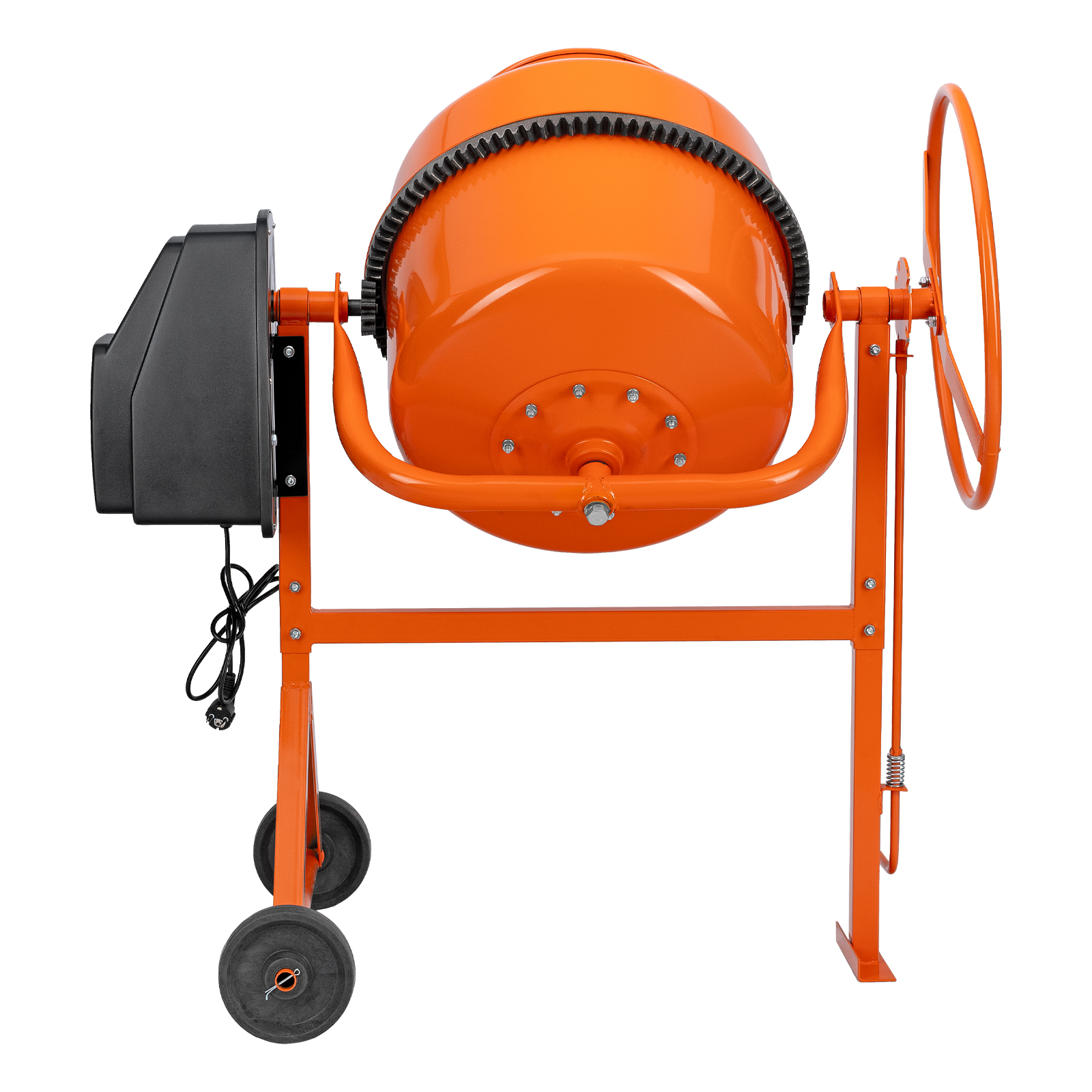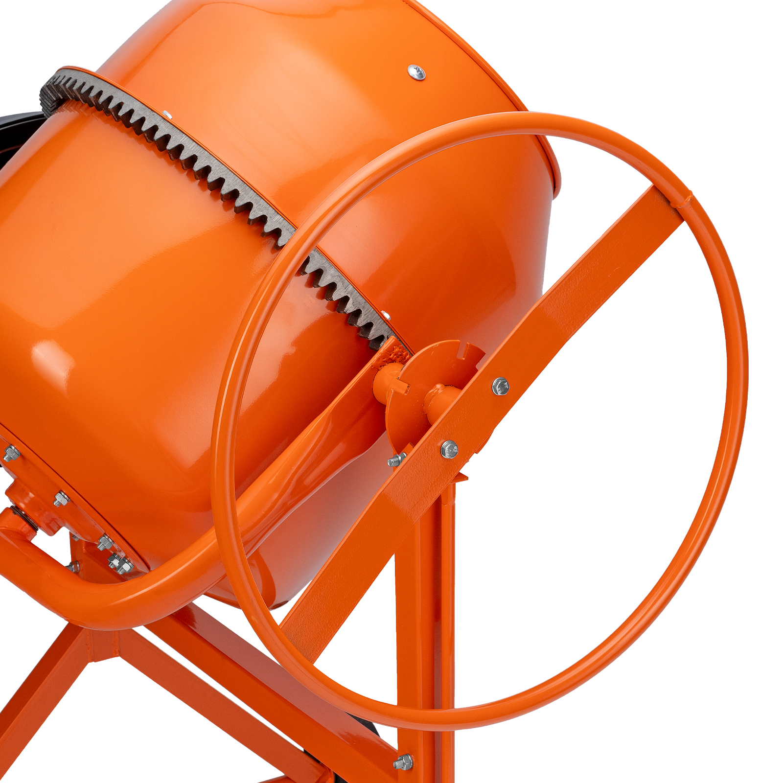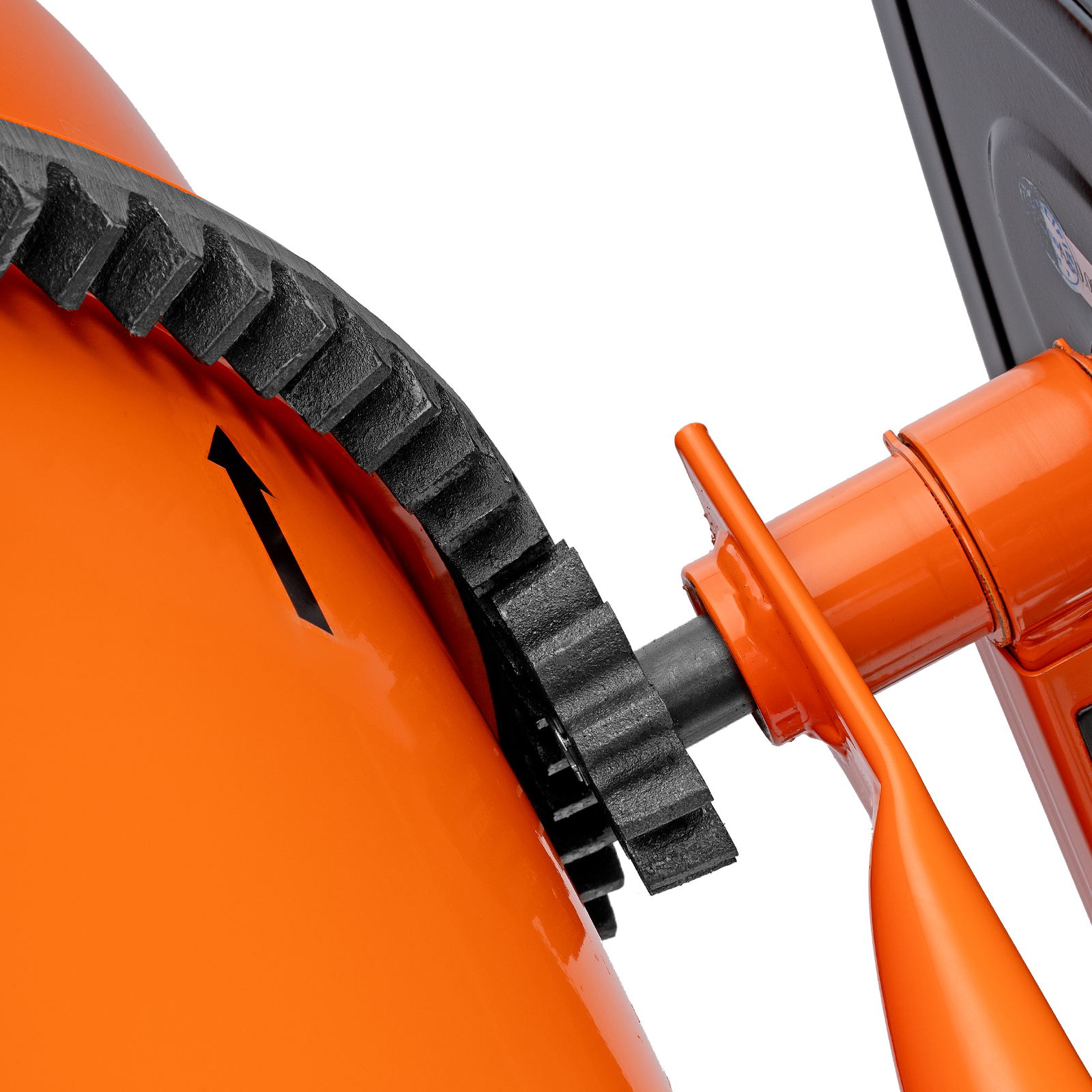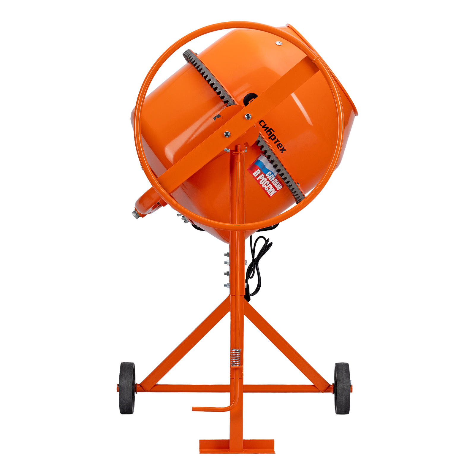 - Удобная загрузка и выгрузка смеси — барабан наклоняется при помощи маховика и легко фиксируется в нужном положении.