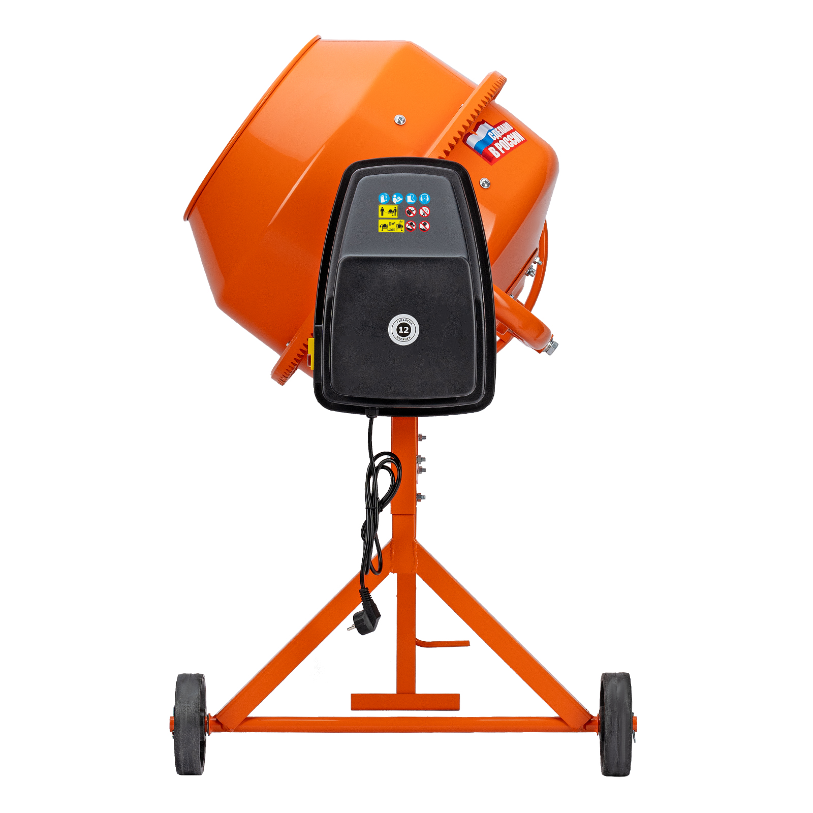 - Электробезопасность — токопроводящие элементы надежно изолированы, бетоносмесителю присвоен класс защиты II.