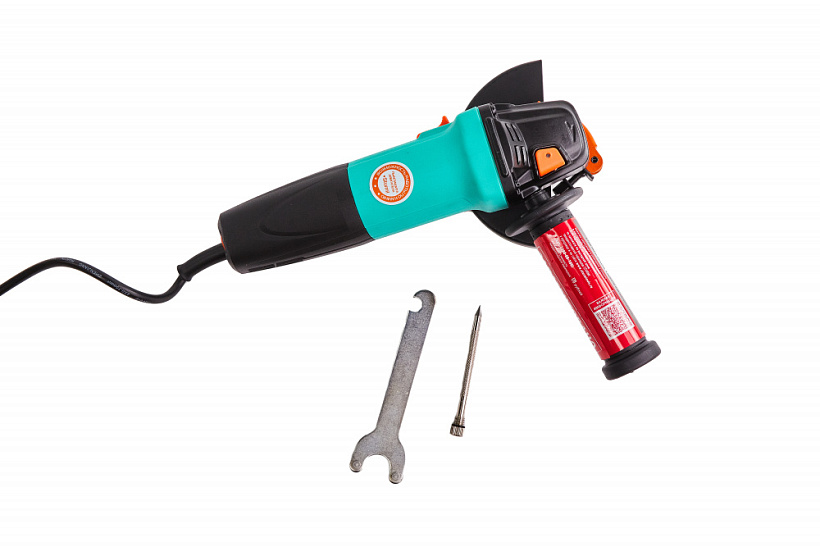 - В комплектацию входят: быстросъемный защитный кожух, гайки для крепления диска, дополнительная рукоятка, ключ.