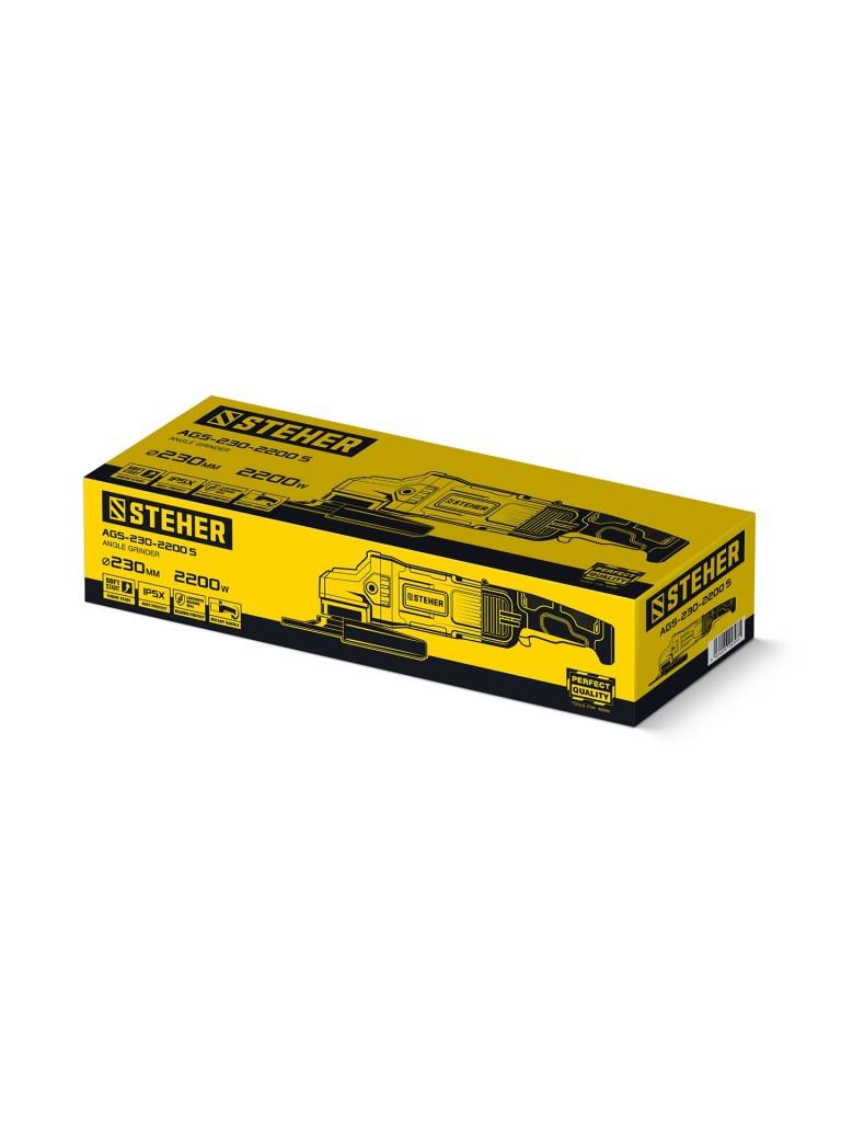 Угловая шлифмашина STEHER AGS-230-2200 S, предназначена для использования в качестве отрезной, дисковой шлифовальной, шлифовальной и зачистной машины при установке соответствующего расходного инструмента.