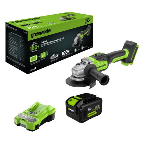 Угловая шлифовальная машина акк. Greenworks GD24AG, 24V, б/щет, 125 мм, 10500 об/мин,1x8Ач,ЗУ,кор (3200207CUH)