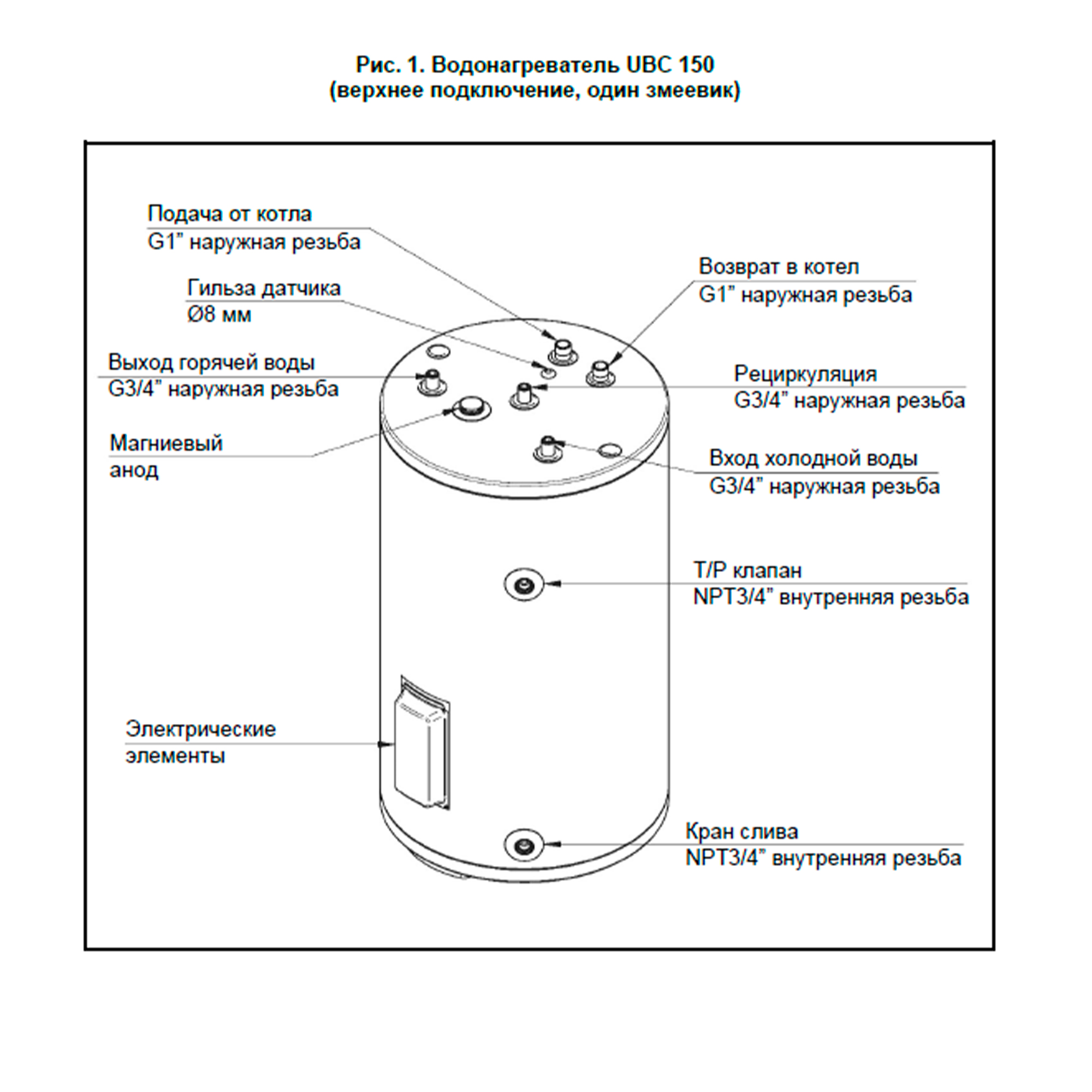 | Подключение ТЭНа | 3/4 дюйм |