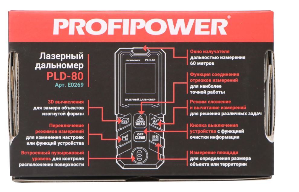 Лазерный дальномер PROFIPOWER PLD-80 предназначен для измерения линейных расстояний, площадей и объёмов. Подходит для бытовых и профессиональных работ, например, для составления плана местности, измерения площади парковки, расчёта материалов в строительстве