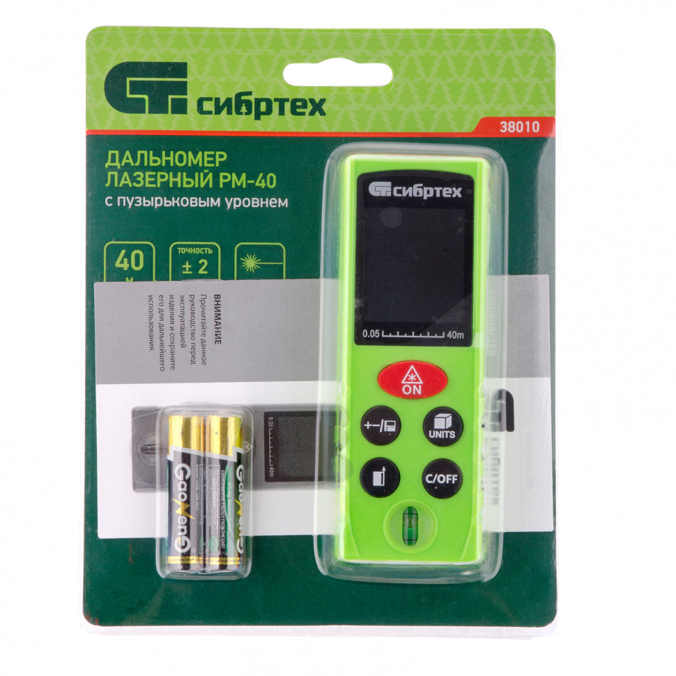 Лазерный дальномер PM-40 торговой марки Сибртех предназначен для измерения линейных расстояний, вычисления площадей и объемов.