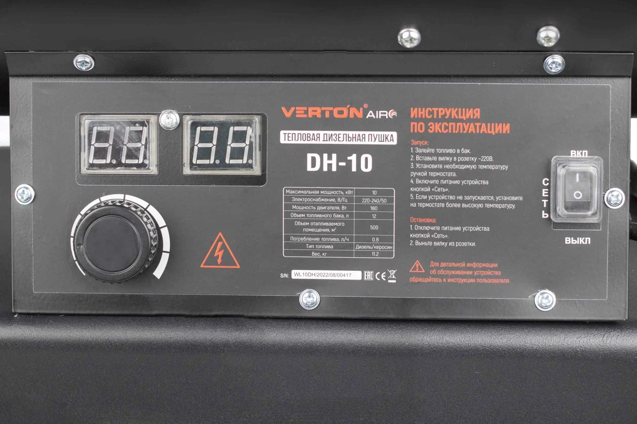 Дизельные тепловые пушки прямого нагрева Verton Air предназначены для обогрева нежилых помещений, гаражей, строительных площадок, значительных площадей складского и производственного назначения с хорошей вентиляцией, при размораживании тепловых магистралей и прогреве автомобиля в сильный мороз. Модели рассчитаны на длительную непрерывную работу с высокой производительностью, надежностью и безопасностью использования
