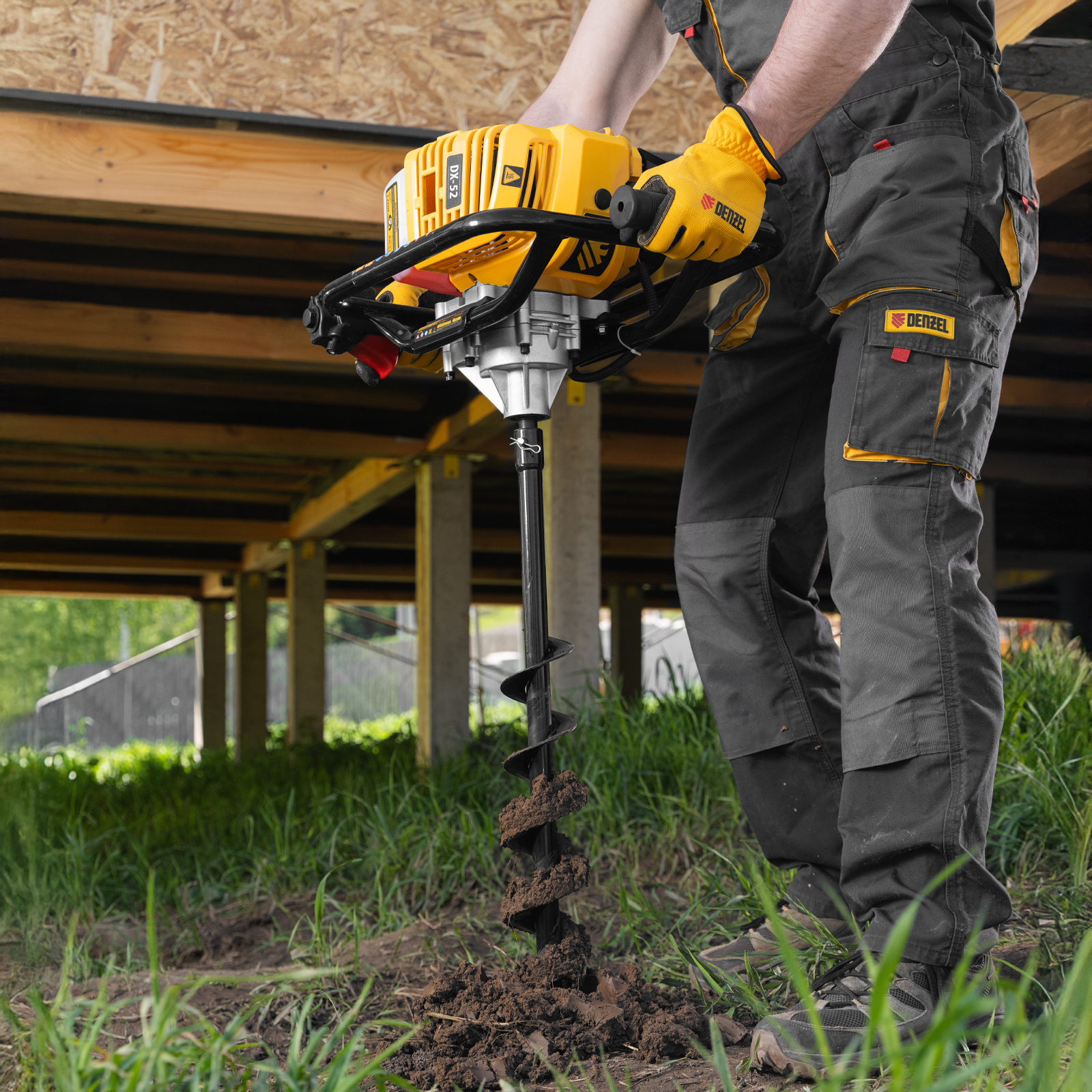 Шнек для грунта Denzel ER-80 56005 длиной 800 мм с диаметром соединения 20 мм, со съемным ножом, устанавливается на мотобур и используется для бурения отверстий диаметром 80 мм. Инструмент пригодится для установки столбчатых опор, формирования лунок для посадки растений и бурения отверстий в грунте различной плотности при выполнении других задач.