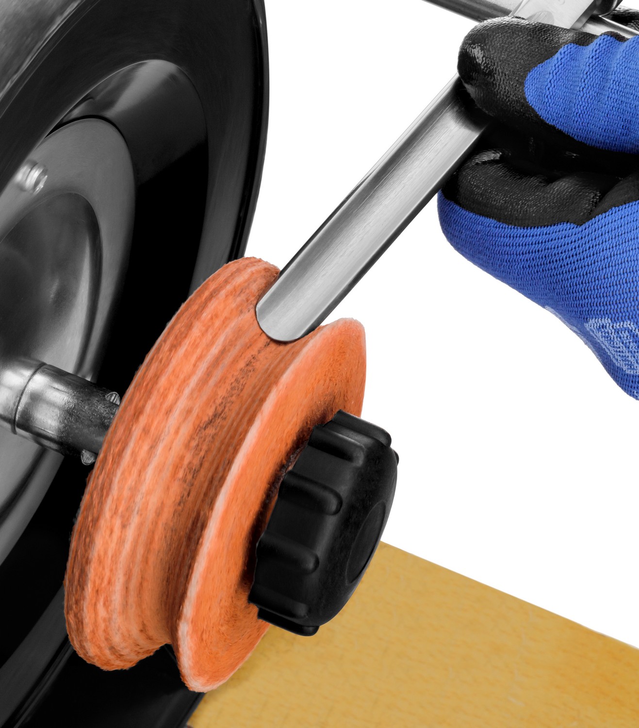Профилированный кожаный полировальный круг предназначен для финишной доводки и полирования инструмента у которого режущая кромка имеет кривизну.