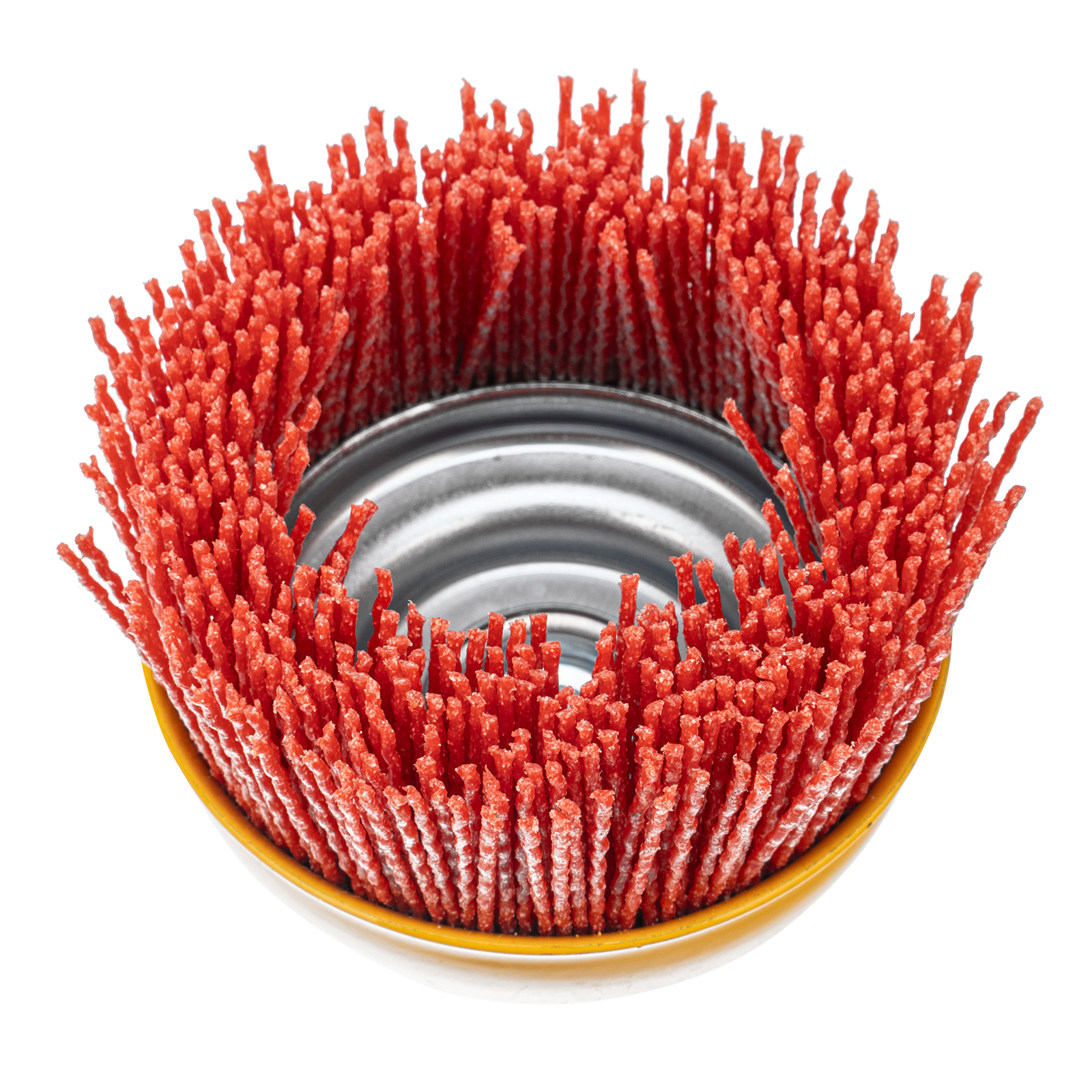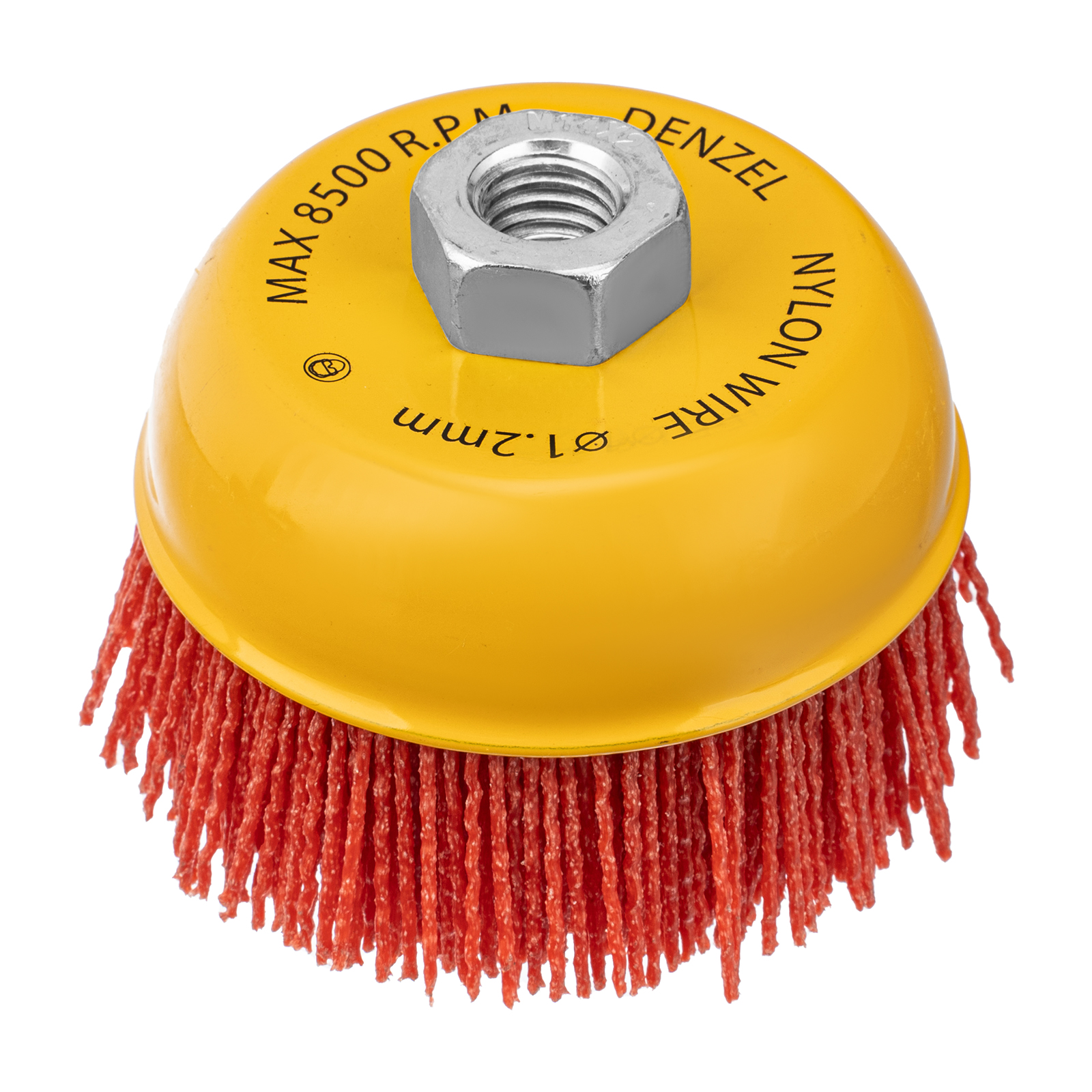 Щетка Denzel 74469 в форме чашки диаметром 100 мм, с нейлоновой щетиной, устанавливается на вал УШМ при помощи гайки М14. Предназначена для выполнения шлифовальных работ. Щетина изготовлена из высококачественного нейлона с нанесенным абразивом из оксида алюминия. удаления загрязнений, краски, пятен ржавчины с твердых поверхностей. Позволяет придать шероховатость поверхности, подходит для браширования древесины. Насадка удобна для обработки плоских деталей большой площади.
