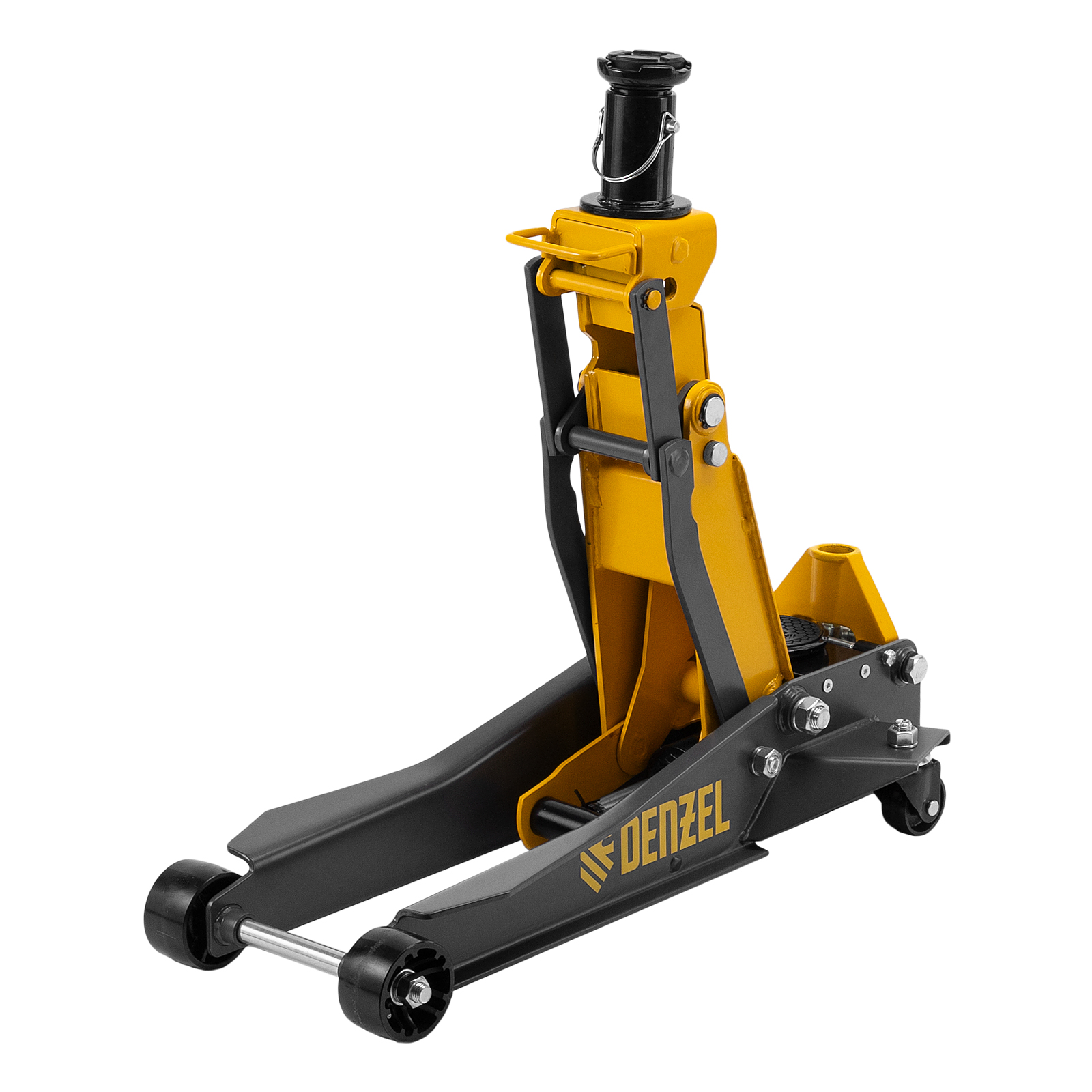 Профессиональный подкатной гидравлический домкрат Denzel 51270 с низким подхватом используется для быстрого подъема на высоту 98-770 мм всех типов автомобилей с любым клиренсом и массой до 2-3 т, в том числе SUV (внедорожников). Регулируемая проставка позволяет менять высоту подхвата и подъема, а также максимальную грузоподъемность. Высота подъема до 770 мм позволяет без труда обслуживать автомобили с высоким клиренсом, такие как рамные внедорожники, например, Dodge RAM, Ford Raptor и т.д.