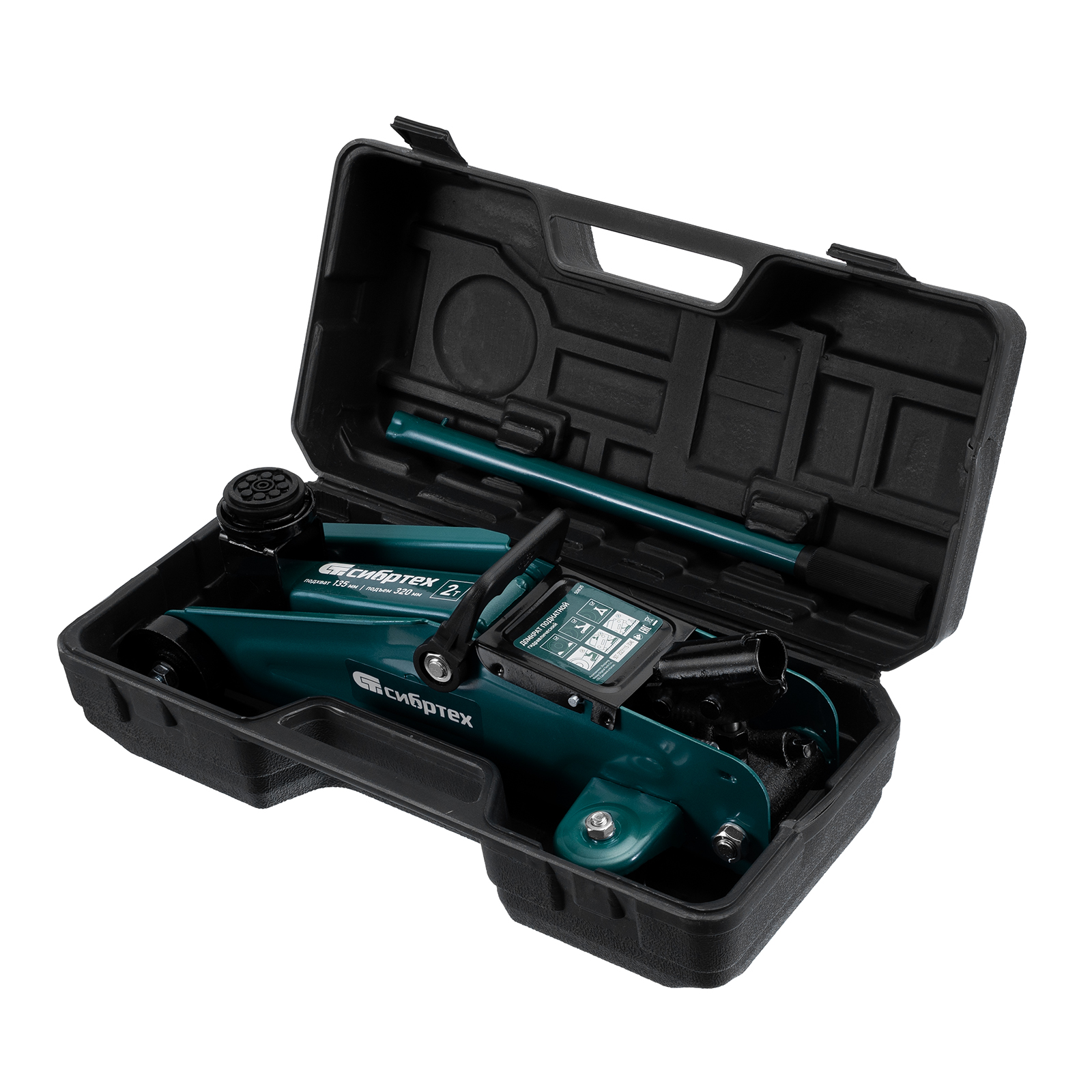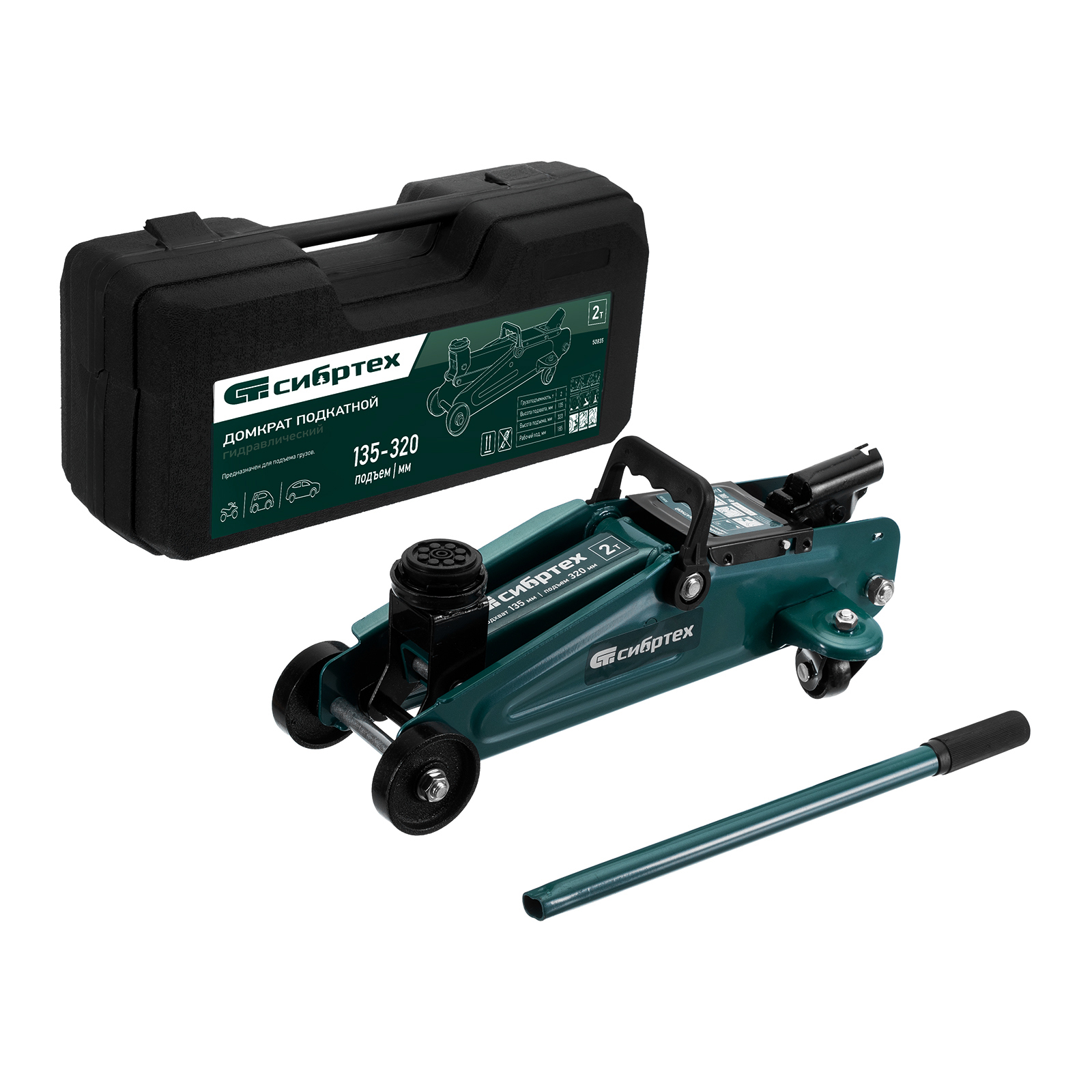 Гидравлический подкатной домкрат Сибртех 50835, поставляющийся в пластиковом кейсе, с высотой подхвата 135 мм, предназначен для подъема грузов массой до 2 т на высоту до 320 мм. Применяется для обслуживания автомобилей со стандартным клиренсом. Компактный домкрат подходит для самостоятельного использования автовладельцами.