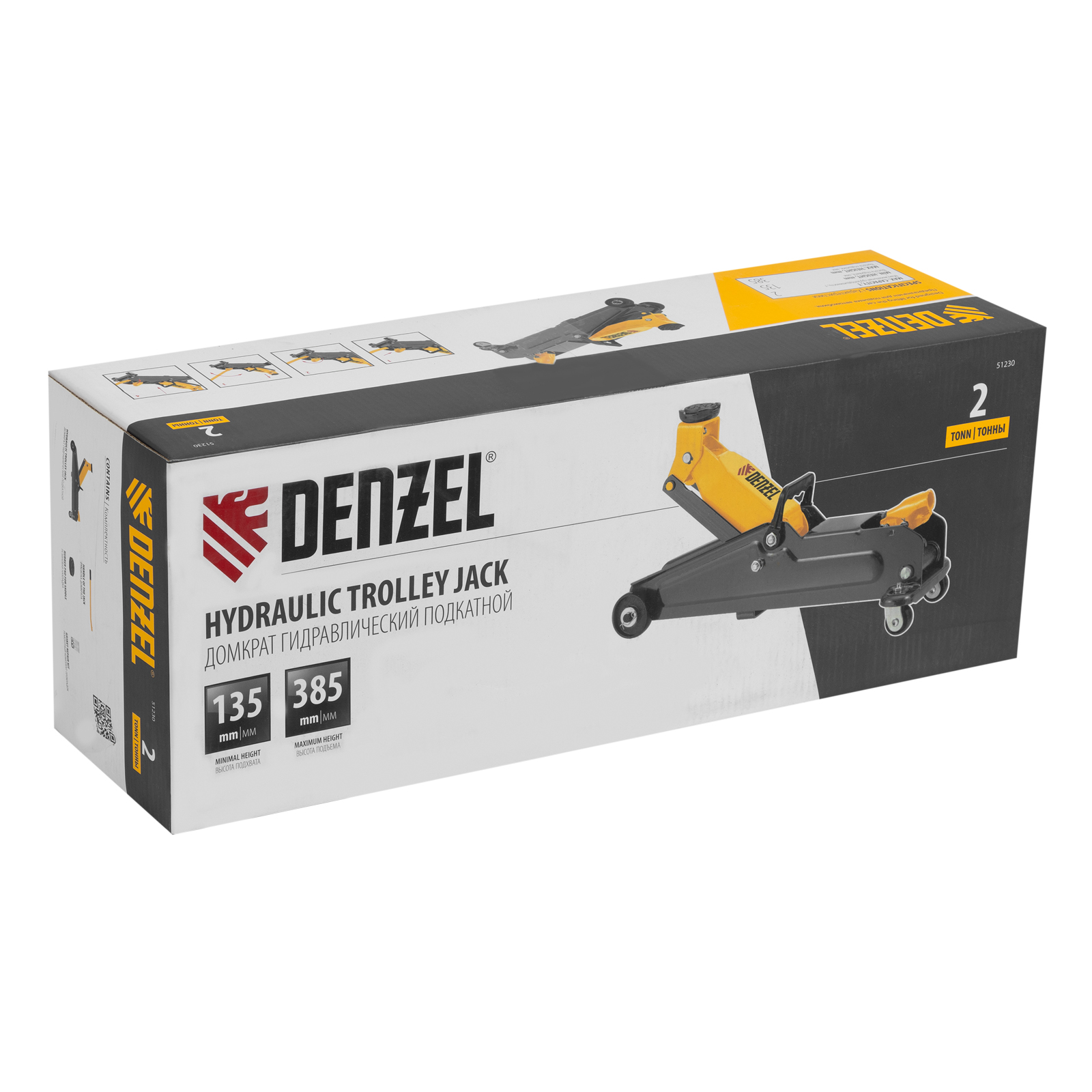 Гидравлический подкатной домкрат Denzel 51230 с высотой подхвата 135 мм предназначен для плавного подъема грузов массой до 2 т на высоту до 385 мм. Домкрат пригодится владельцам легковых автомобилей со стандартным клиренсом.