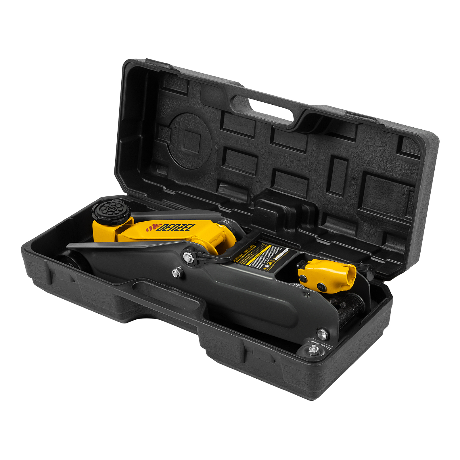 - Удобное хранение и транспортировка — домкрат поставляется в прочном пластиковом кейсе.