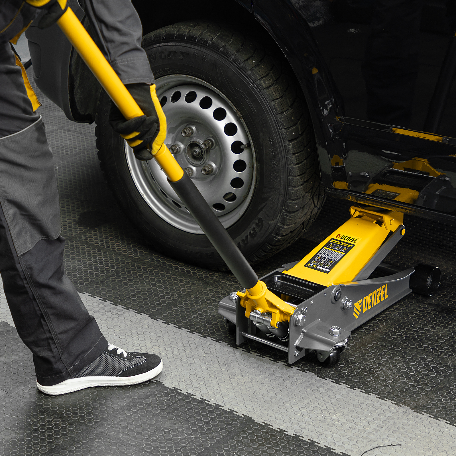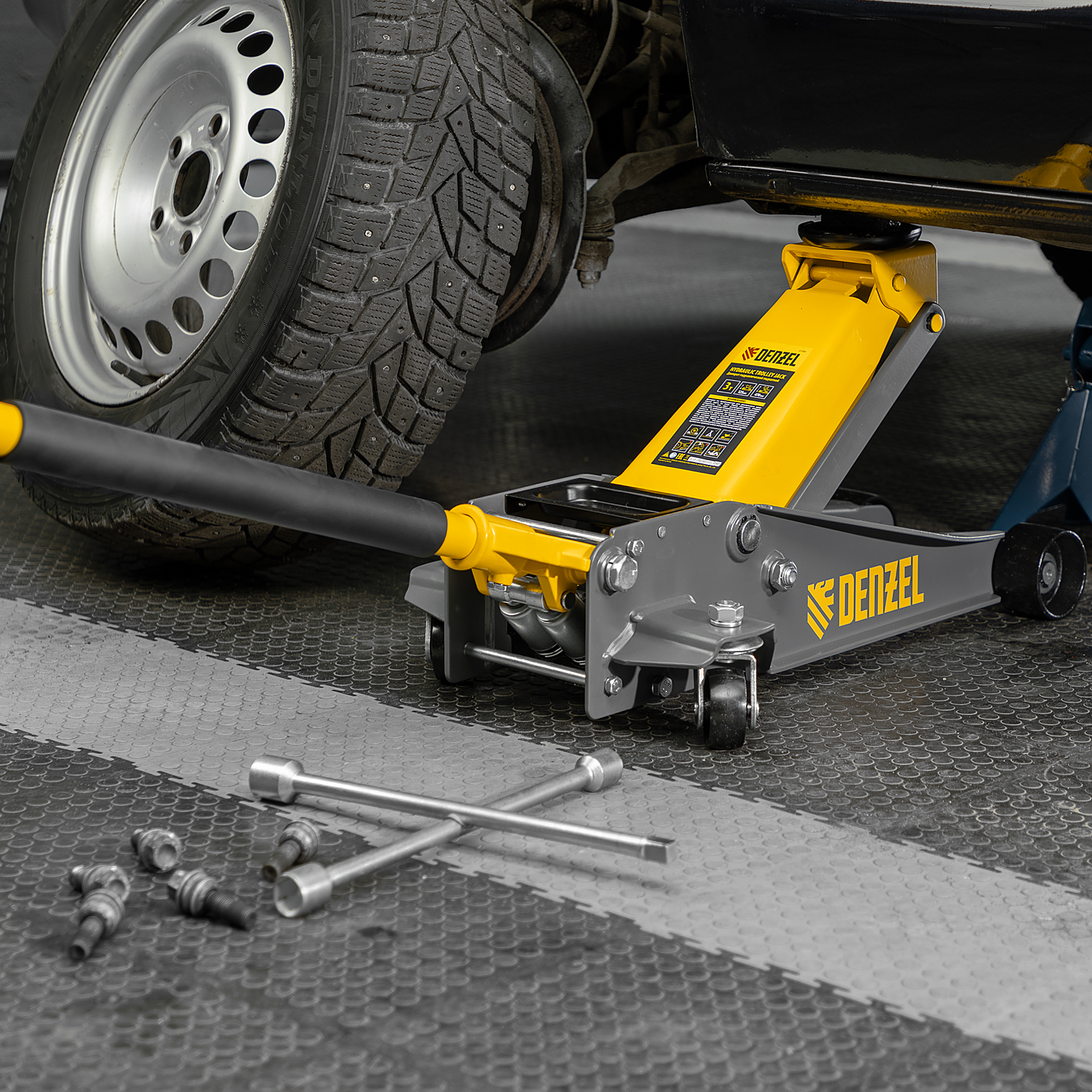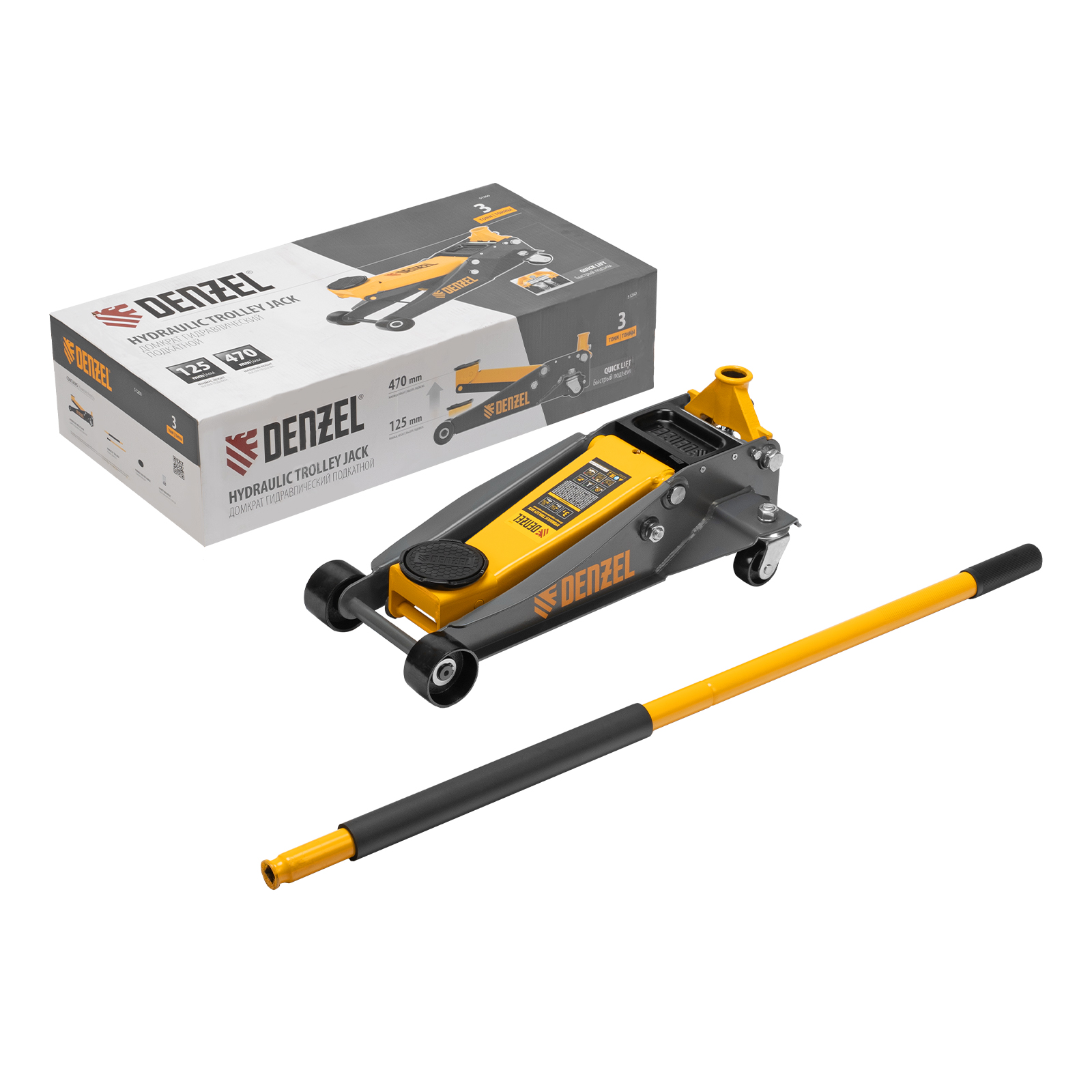 Профессиональный подкатной гидравлический домкрат Denzel 51260 используется для быстрого подъема на высоту 125-470 мм всех типов автомобилей с любым клиренсом и массой до 3 тонн. В гидравлическом блоке предусмотрено 2 насоса (система быстрого подъема QUICK LIFT), благодаря чему для достижения предельной высоты достаточно 6 качков рукоятки. Домкрат подходит для использования на станциях профессионального техобслуживания и шиномонтажа, а также для личного использования.