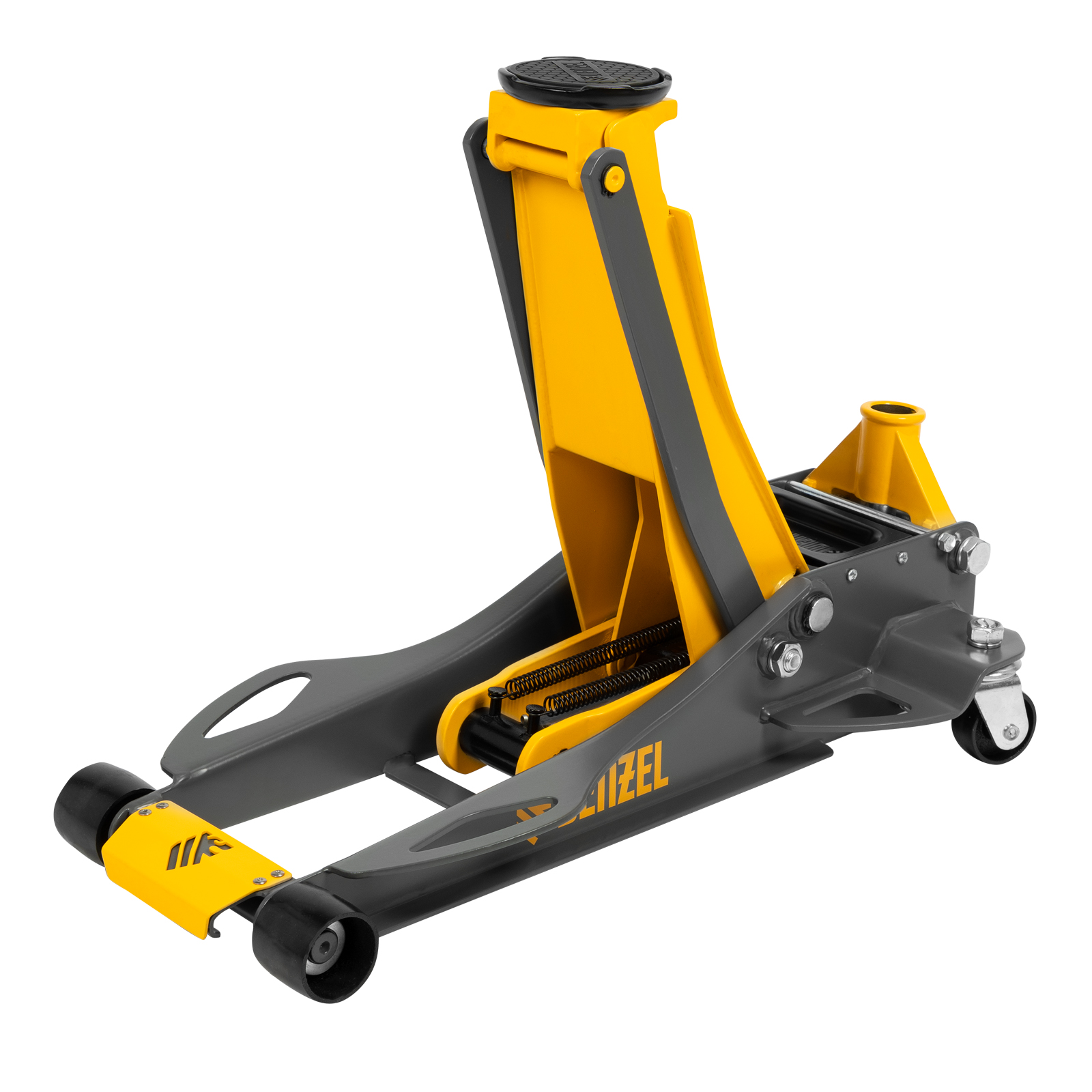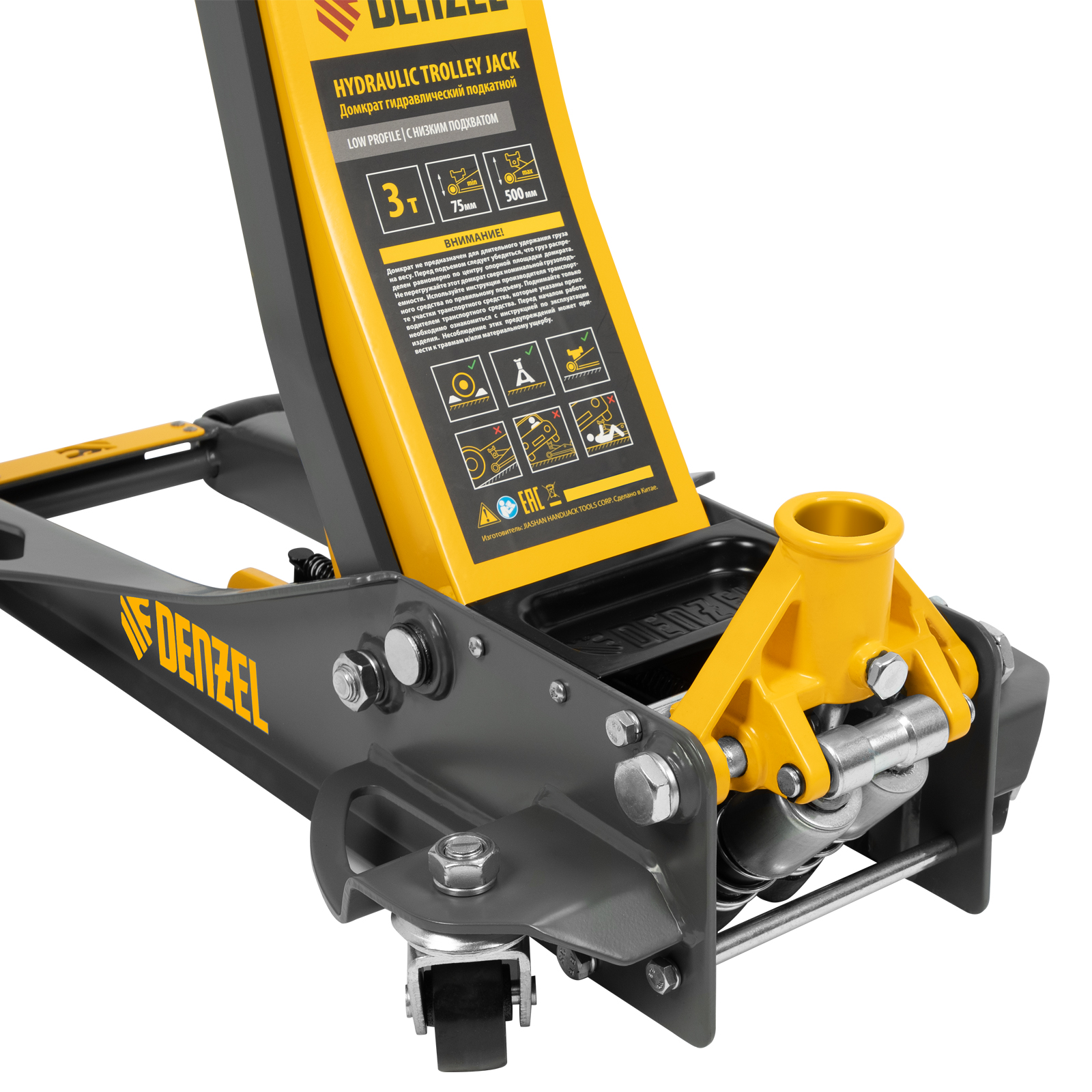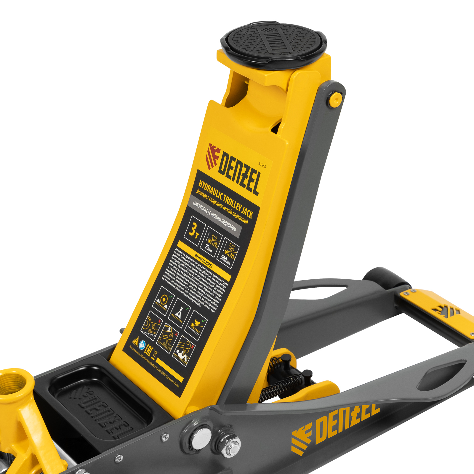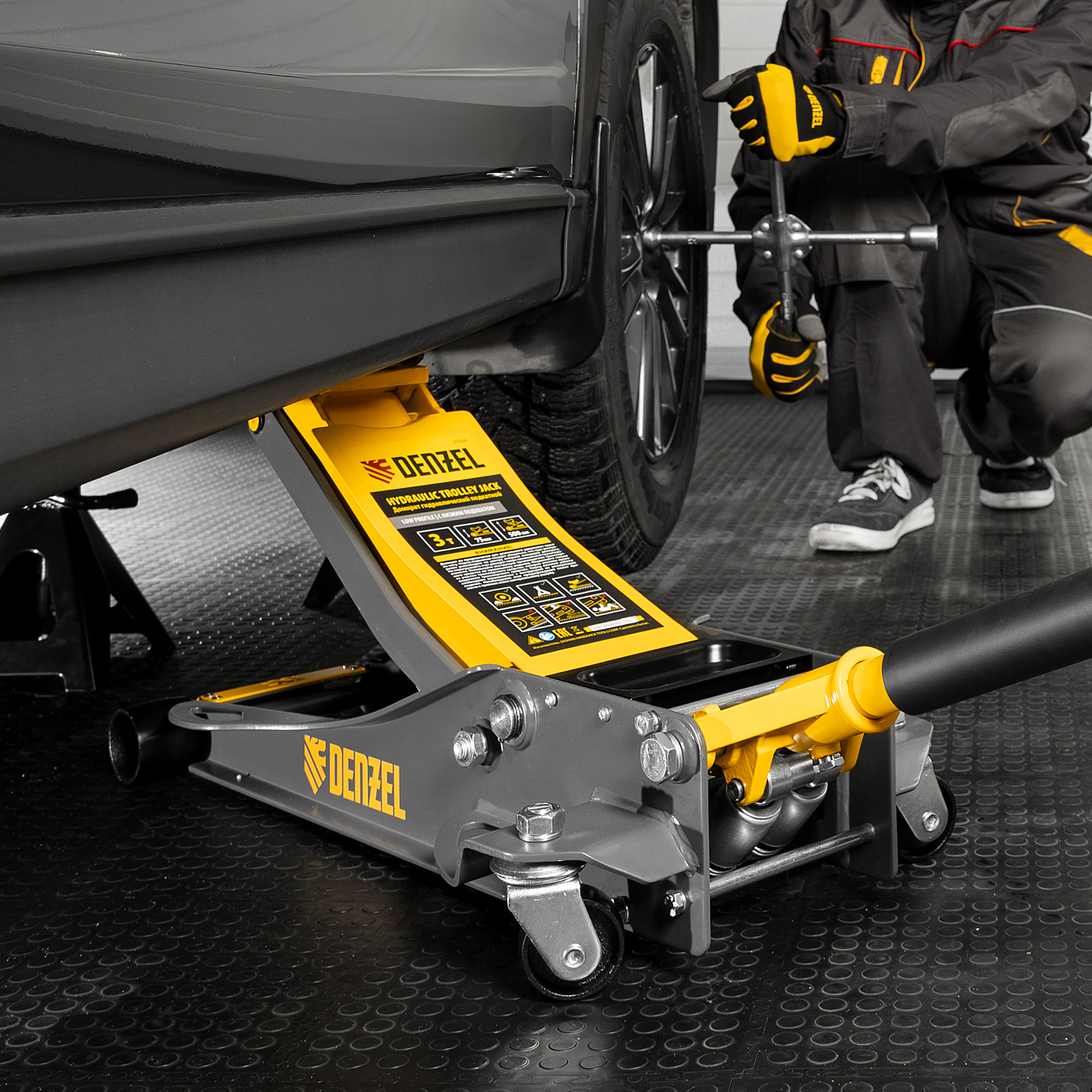 Профессиональный подкатной гидравлический домкрат Denzel 51250 с низким подхватом используется для быстрого подъема на высоту 75-500 мм всех типов автомобилей массой до 3 т и с любым клиренсом, в том числе сверхнизким. В гидравлическом блоке предусмотрено 2 насоса (система быстрого подъема QUICK LIFT), благодаря чему для достижения предельной высоты достаточно 6 качков рукоятки. Домкрат подходит для использования на станциях профессионального техобслуживания и шиномонтажа, а также для личного использования.