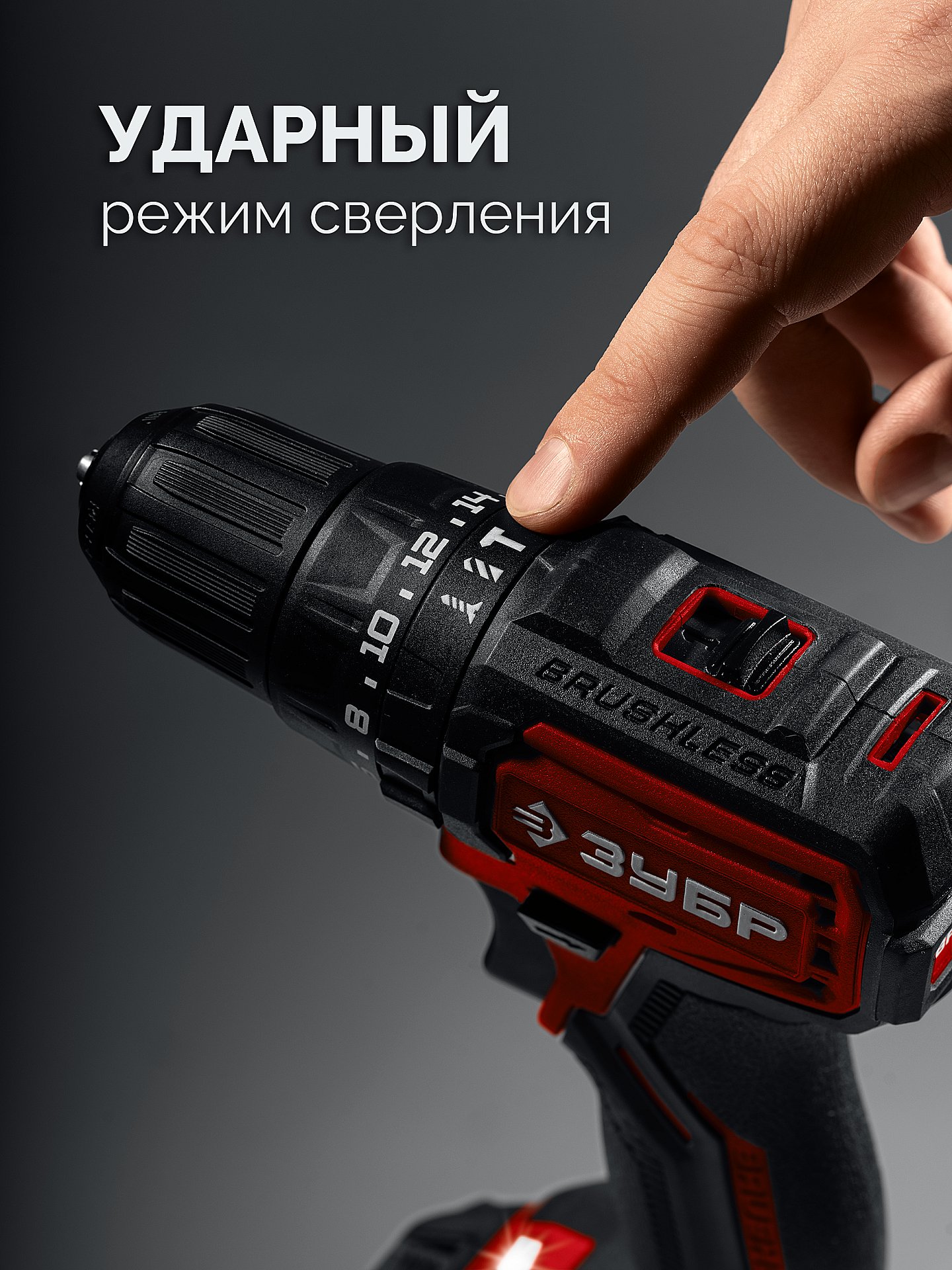 Бесщеточная дрель-шуруповерт ударная ЗУБР обеспечивает как точное заворачивание маленьких саморезов, так и уверенное закручивание крупного крепежа до 8мм. Компактный размер и современный дизайн делают ее удобной для работы. Комплектация с аккумулятором позволяет начать работу сразу после покупки