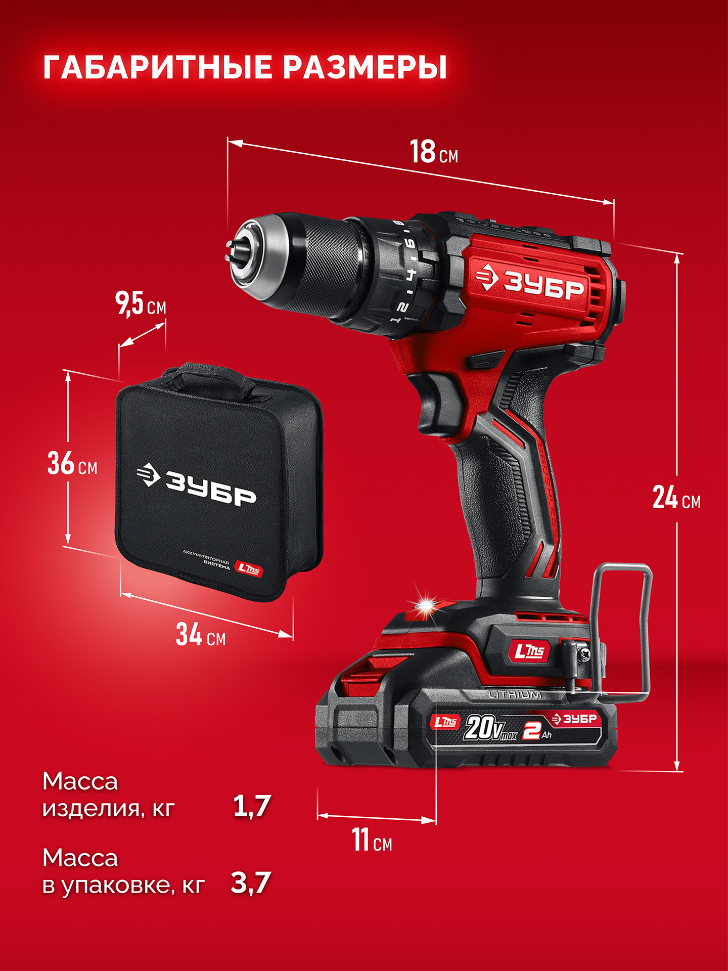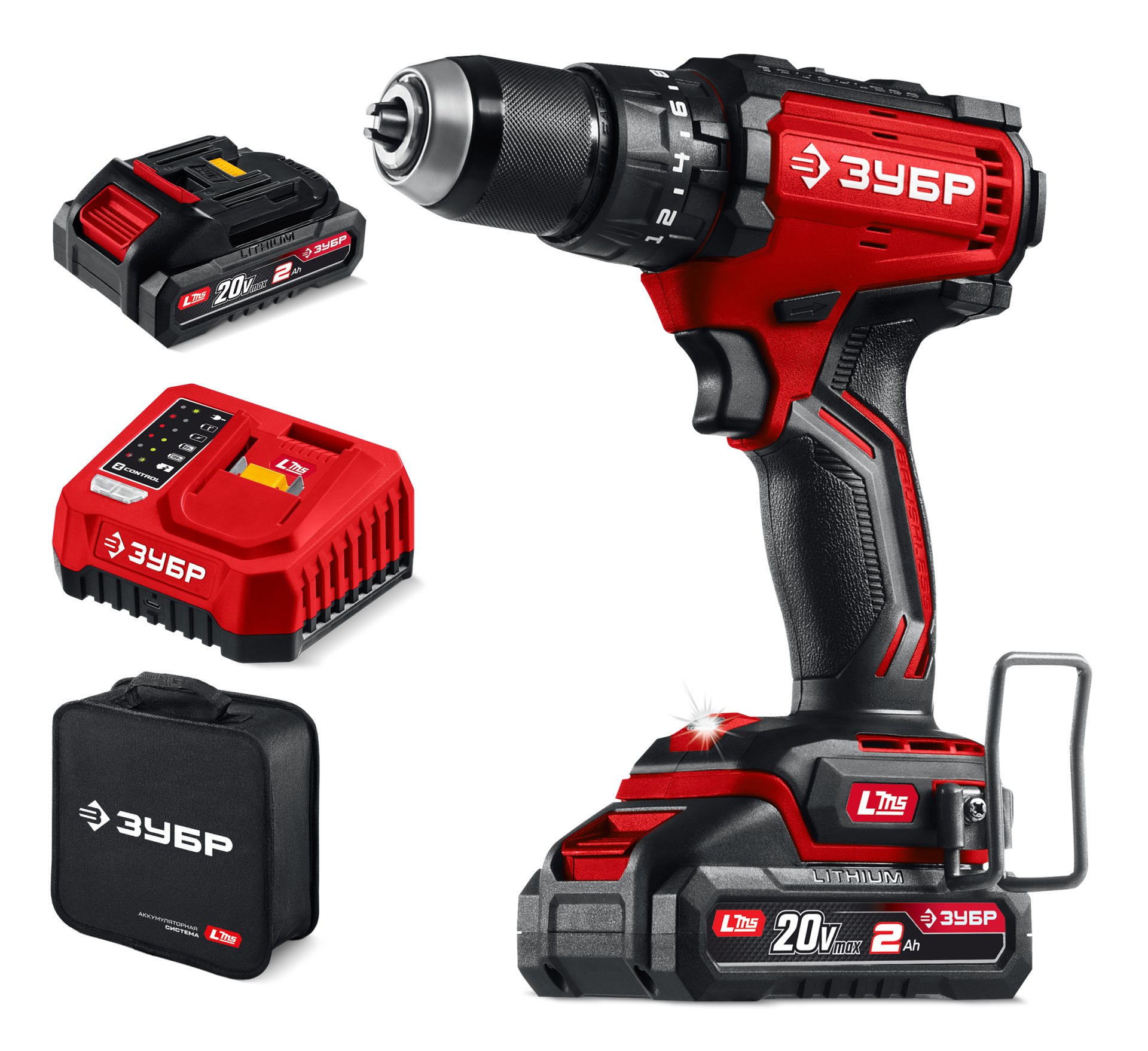 Бесщеточная ударная дрель-шуруповерт ЗУБР 20 В, 65 Н·м, 2 АКБ LMS (2 А·ч)