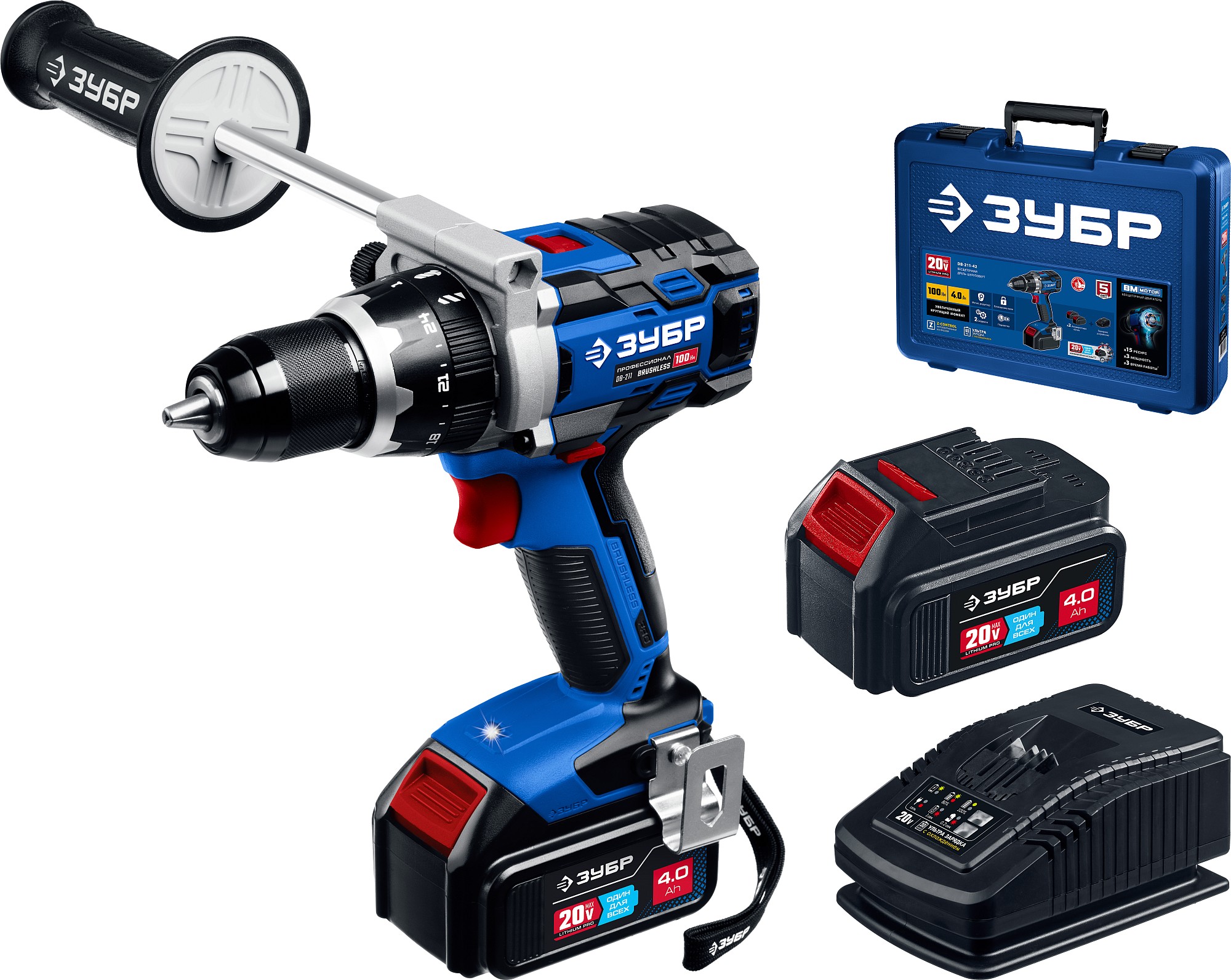 Дрель-шуруповерт аккумуляторная ЗУБР Т7, 20 В, 100 Н·м, 2 АКБ (4 А·ч)