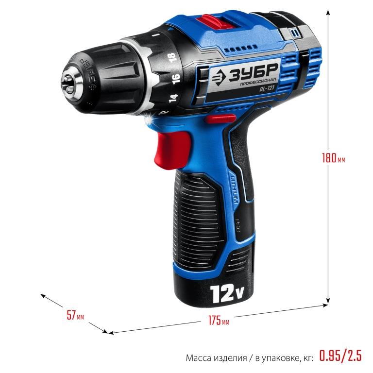 Аккумуляторная дрель шуруповерт ЗУБР DL-121-22F, предназначена для сверления отверстий в различных материалах (при установке сверла), а также для вкручивания/выкручивания шурупов, саморезов и винтов (при установке соответствующих бит), перемешивания ЛКМ (при установке соответствующих насадок). Супер яркий LED фонарь со светодиодом мощностью 1 Вт и удобной эргономикой. Профессиональный двигатель Mabuchi и высококлассные подшипники. Высокий крутящий момент благодаря оптимальному подбору параметров двигатель-редуктор. Дополнительный аккумулятор в комплекте для исключения простоев в работе.