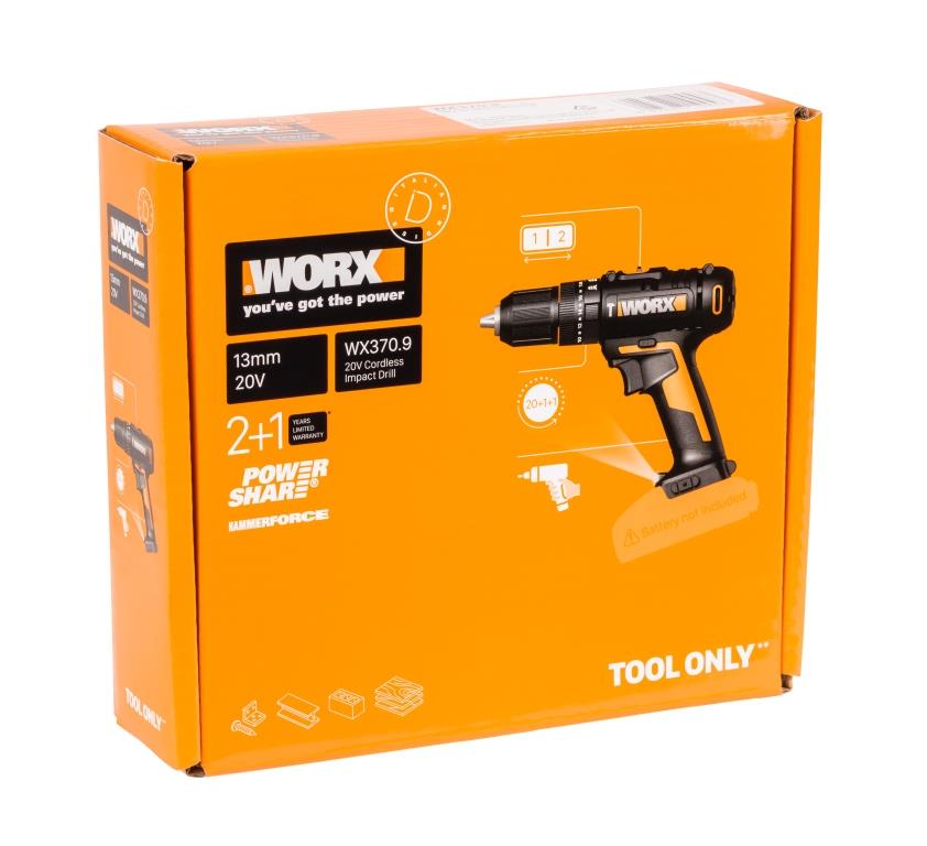 Компактная ударная дрель WORX WX370 – это мобильное решение для сверления и работы с крепежом без проводов. В качестве источника питания используется универсальный аккумулятор Powershare 20В с защитой от глубокого разряда и перегрева. Гибкость настройки Помимо двух основных режимов – работа с крепежом и сверление, дрель имеет 20+1+1 ступеней регулировки крутящего момента. Выбирайте оптимальный режим и работайте с материалами различной плотности. Функциональная подсветка Светодиодная подсветка рабочей зоны обеспечивает дополнительную безопасность и удобство работы в условиях недостаточной видимости. Ресурсный двигатель Современных щеточный двигатель имеет достаточный запас прочности. В отличие от предшественника, щеточный мотор получил на 25% больше крутящего момента и превосходство в сроке службы на 50%. Максимальный крутящий момент – 50 Нм. Быстрозажимной патрон Дрель WORX WX370 оснащена патроном 13мм, который имеет блокировку шпинделя и позволяет менять оснастку одной рукой. Данная функция способствует оперативной подготовке инструмента к любому виду работ. Технические характеристикиТип двигателя: Щеточный. Напряжение аккумулятора: 20 В. Тип аккумулятора: Li-lon. Количество аккумуляторов в комплекте: 0. Max крутящий момент: 50 Нм. Число ступеней крутящего момента: 20+1+1 Число скоростей: 2. Наличие удара: есть. Наличие подсветки: есть. Вес устройства без АКБ: 1,0 кг. Коробка |