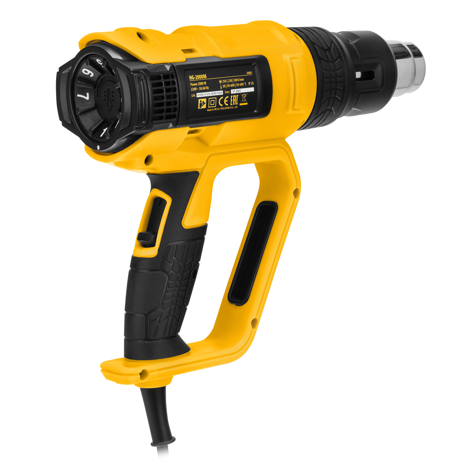 Фен технический Denzel HG-2000M 28005 мощностью 2000 Вт, с 3 режимами работы, подходит для снятия лака и краски с различных поверхностей, размораживания и пайки труб, создания изгиба в пластиковых деталях, генерации точечного теплового потока для нагрева небольших участков и др. Справиться с этими задачами помогает треугольный скребок и 4 насадки: плоская, полукруглая, отражающая и редукционная.;Мощность фена 2 кВт обеспечивает стабильную производительность на уровне 250/500 л/мин, в зависимости от выбранного режима. Температура выходящего потока составляет 50/50-450/50-600 ℃.