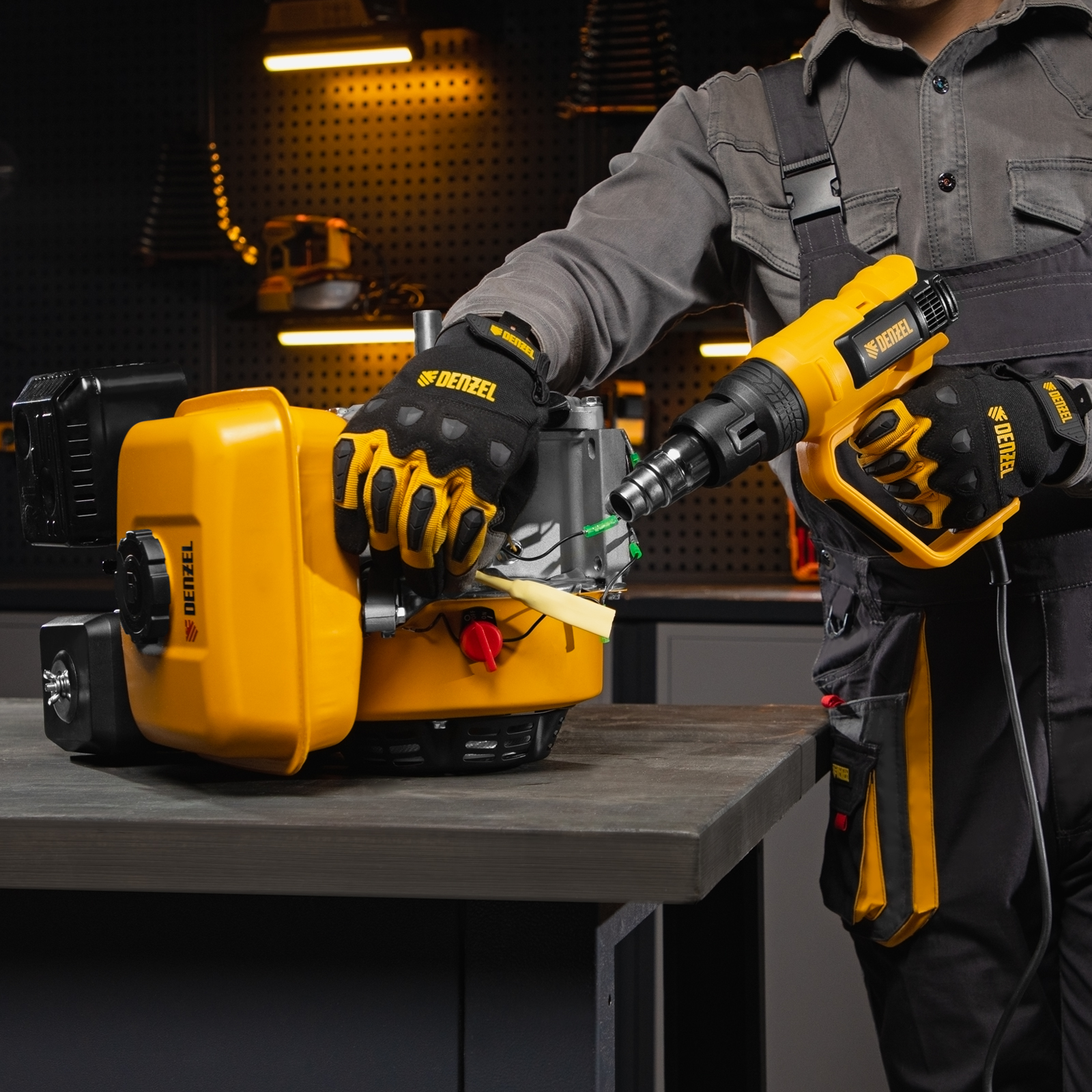 - Многозадачность — плавная аналоговая настройка температуры обеспечивает выполнение целого спектра задач — от деликатного просушивания до сварки и пайки.