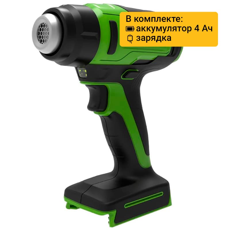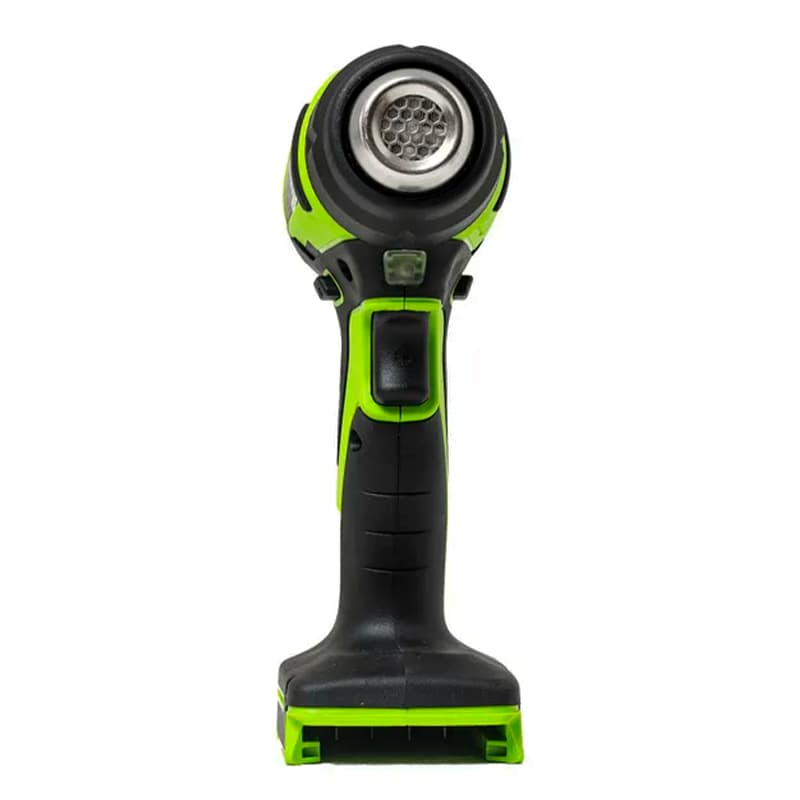 Аккумуляторный технический фен Greenworks G24HG 24V 3400207 — фен из серии 24V для термоусадочного монтажа, пайки труб и других работах. Имеет поток воздуха 200 л/мин, температуру до 550 °C ±10% и уровень теплоты в БТЕ 400 Вт.