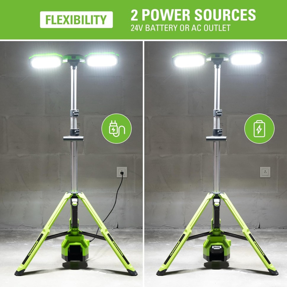 Мачта осветительная аккумуляторная Greenworks, 24V /110-240V, 3000 лм, без АКБ и ЗУ , арт. 3503207