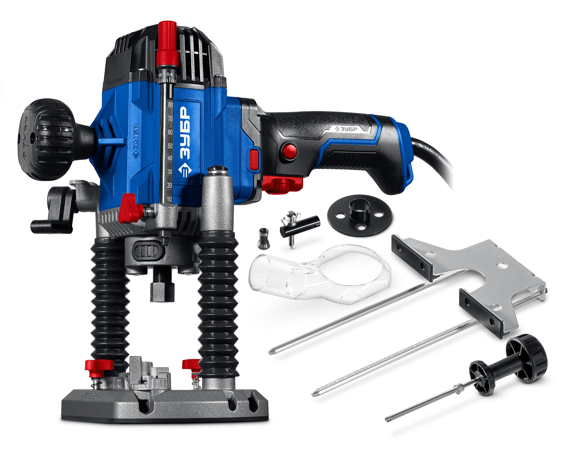 Фрезер ЗУБР серии Профессионал – многофункциональное изделие для всех видов фрезерования (продольного, фигурного, по шаблону, по радиусу) различных материалов. Мощный двигатель обеспечивает эффективную и производительную работу. Максимальная глубина погружения 80 мм позволяет выполнять пазы под замки в полотнах дверей. Удобная эргономика и бОльшая маневренность благодаря удлиненной основной рукоятке способствуют удобству при работе