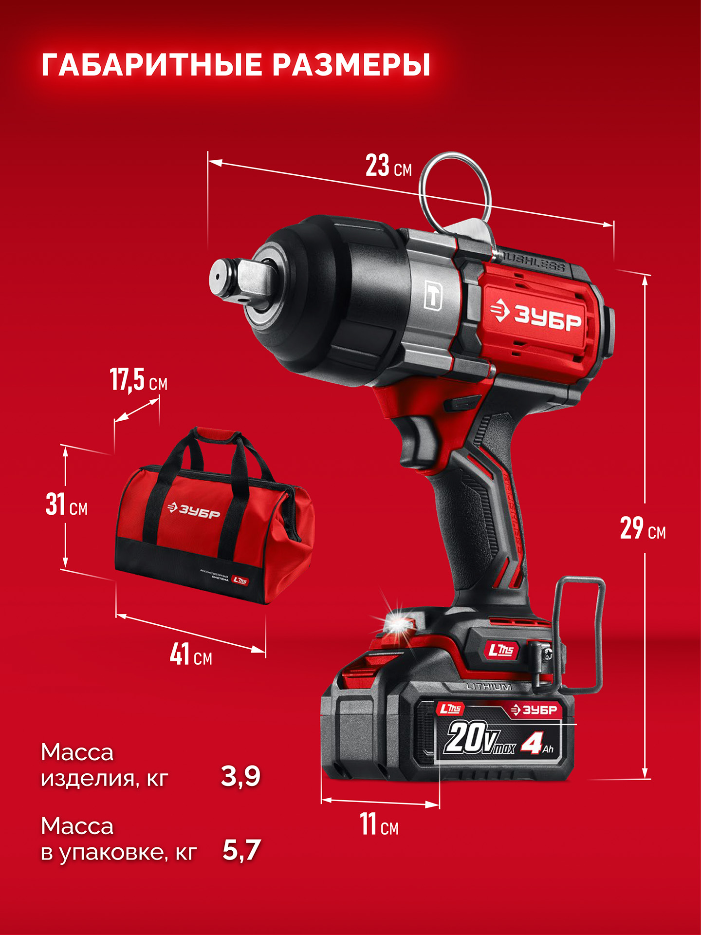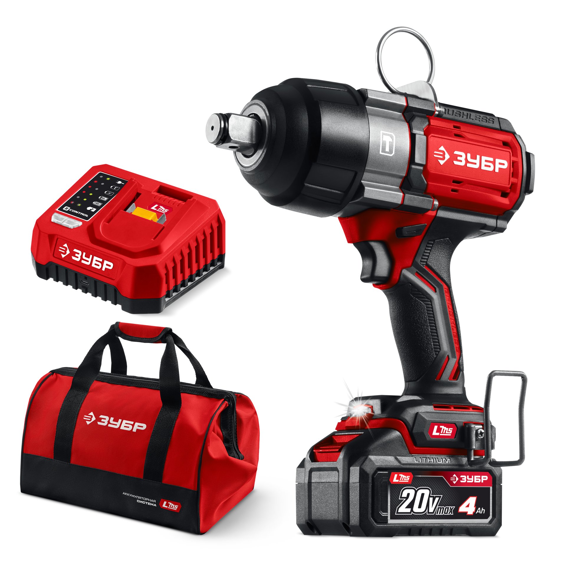 Бесщеточный ударный гайковерт ЗУБР 20 В, 1000 Н·м, 1 АКБ LMS (4 А·ч)