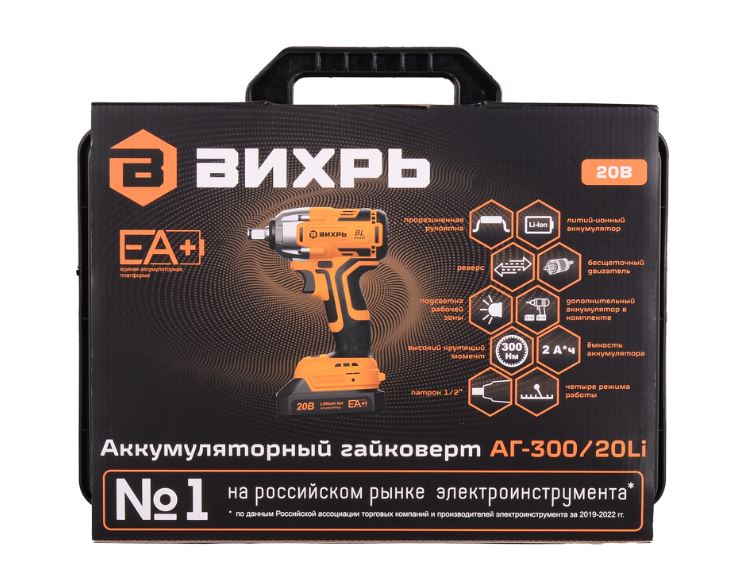 Гайковерт аккумуляторный Вихрь АГ-300/20Li (в комплекте 2 АКБ и ЗУ) в кейсе
