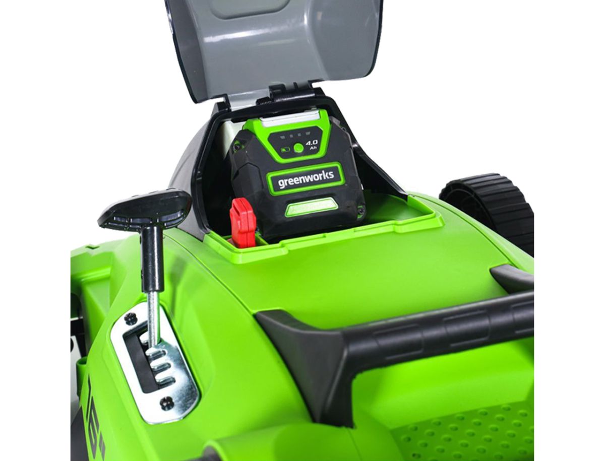 Модель работает от аккумуляторных батарей 40V, совместимых со всеми устройствами из серии Greenworks G-MAX 40V. Линейка настолько обширна, что в ней найдутся инструменты для большинства видов садовых работ