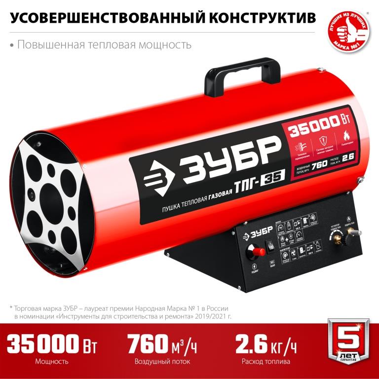 Высокоэффективный газовый обогреватель, работающий на наиболее распространенном виде топлива. Оптимально подходит для использования на открытых и полузакрытых площадках для просушки и обогрева, размораживания траншей и аварийного прогрева помещений, а так же для монтажа натяжных потолков. Надежный поджиг дуги и эффективное горение гарантируют безотказную подачу тепла в любых условиях эксплуатации. ЗУБР - тепло всегда и везде